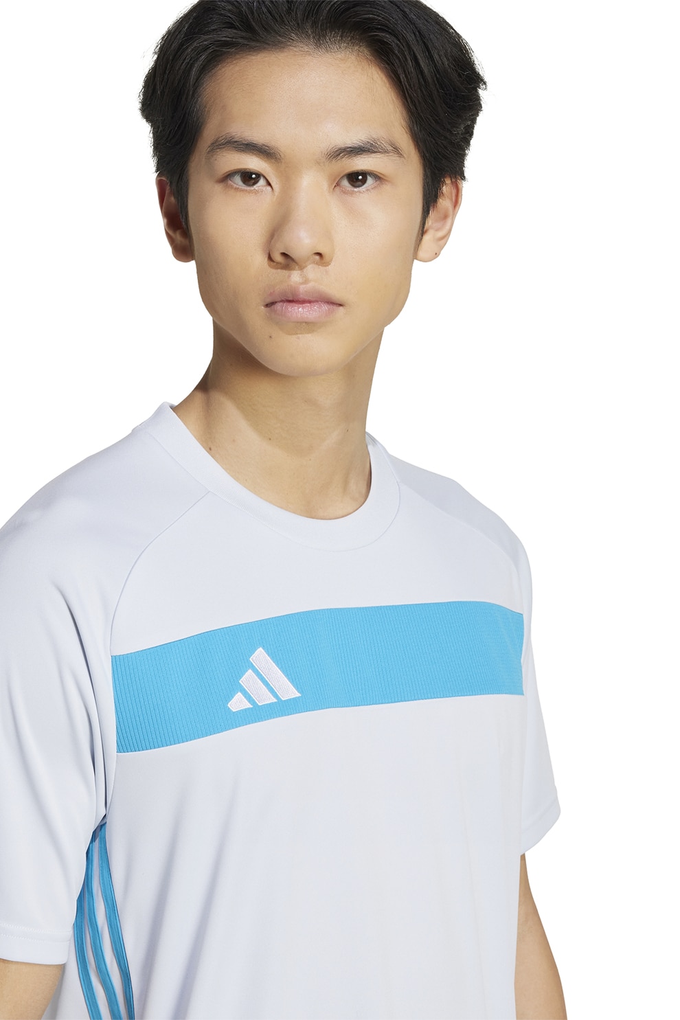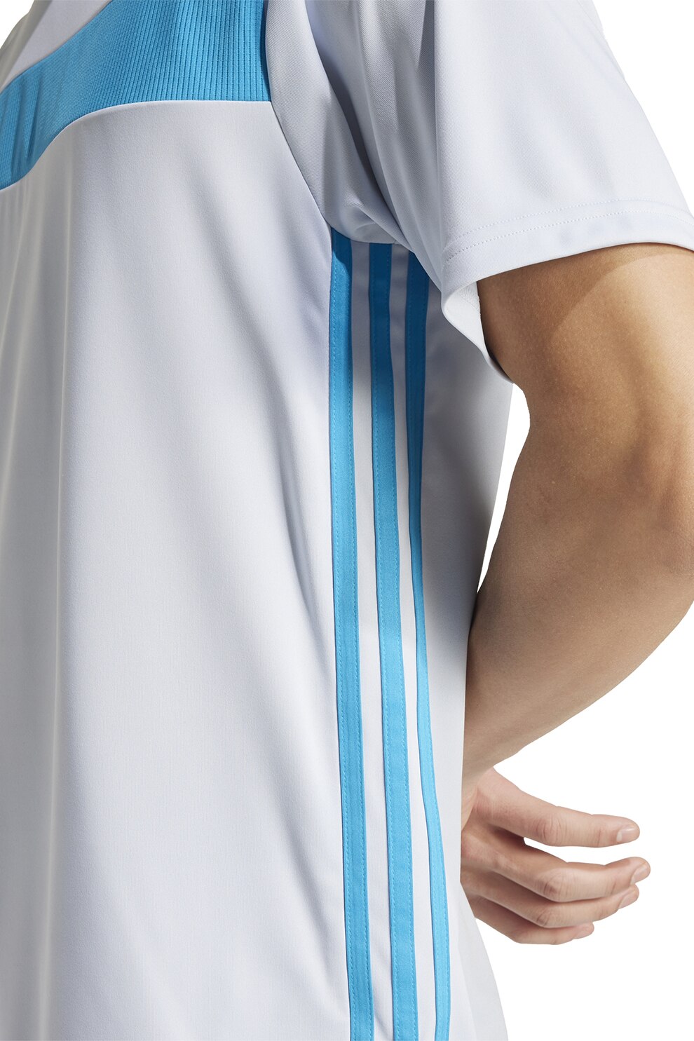 adidas Performance - Футболна тениска с овално деколте, Бял/Аквамарин син