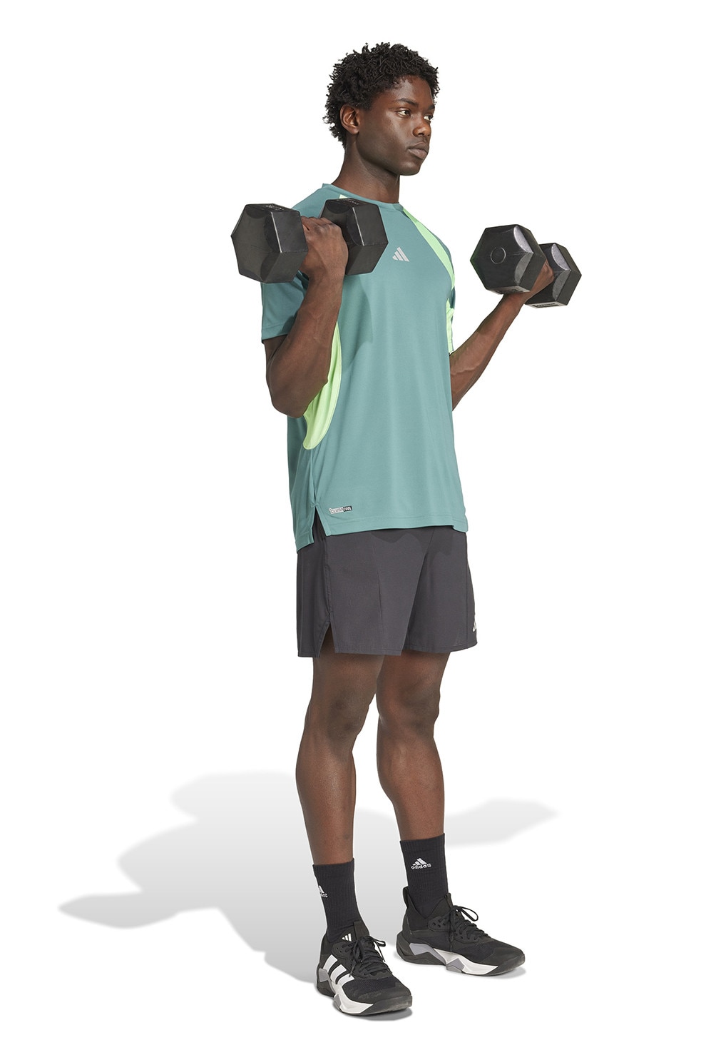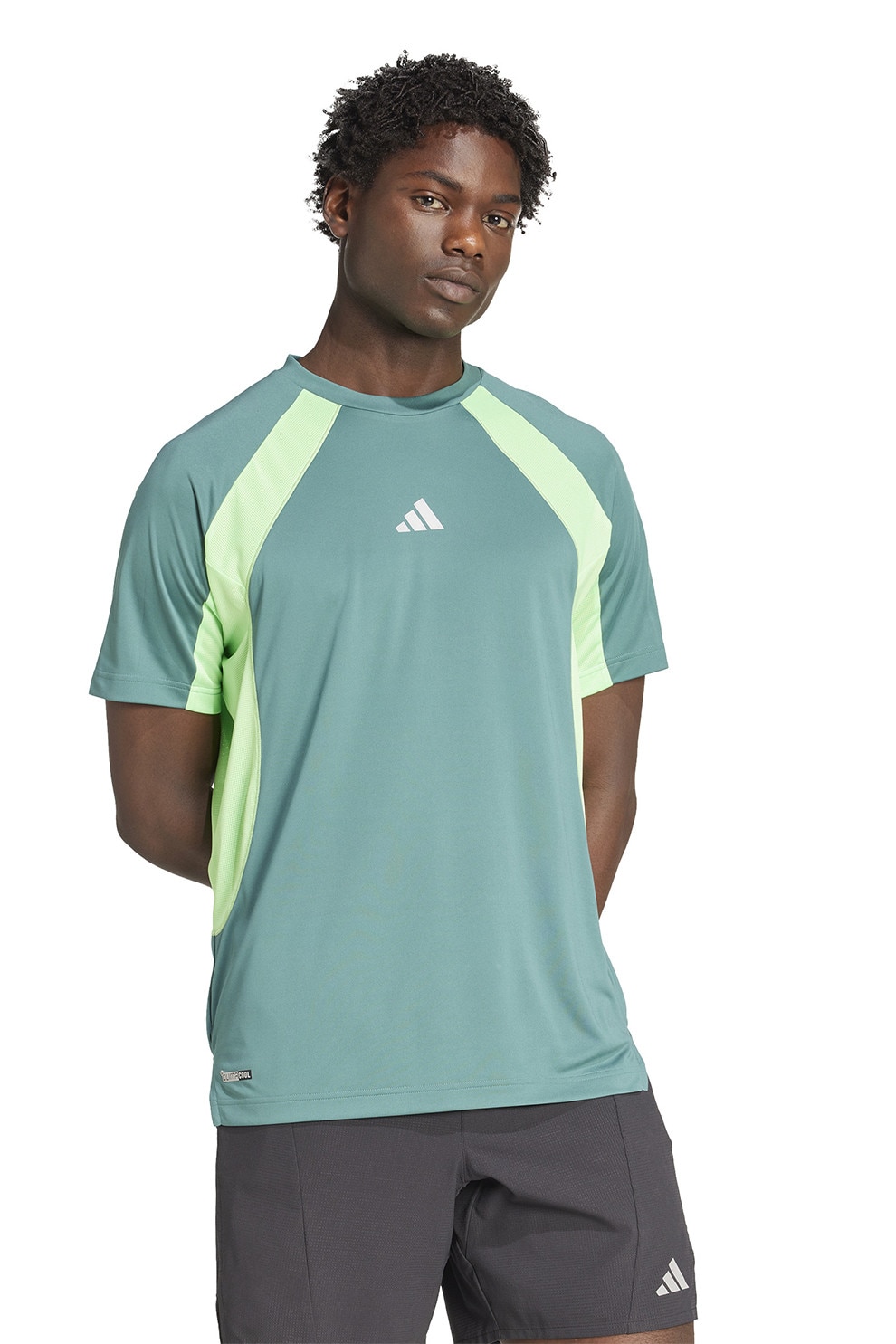 adidas Performance, Тениска с овално деколте, Сламеножълт/Светлозелен