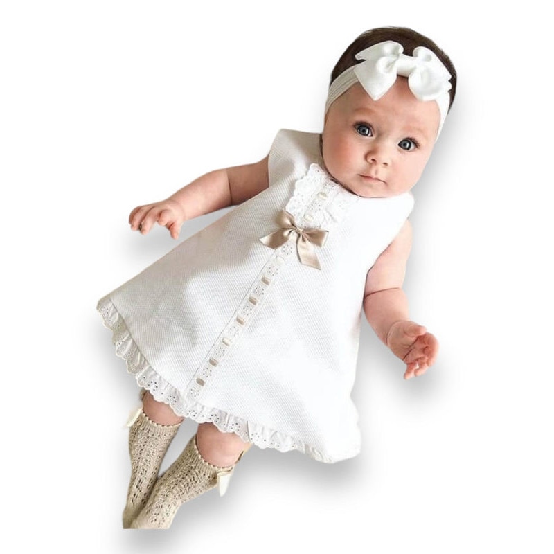 Бяла рокля с лента за бебе СОФИЯ