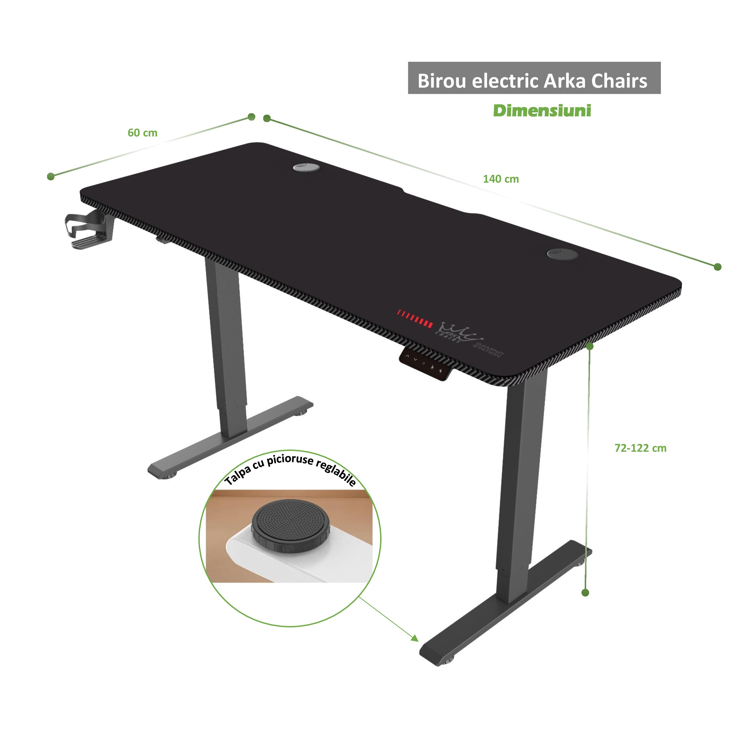 Бюро с регулируема височина, функции за памет, управление на кабели, Arka Chairs, вграден плот за мишка 140x60, височина 70-120 см, издръжливост 60 кг