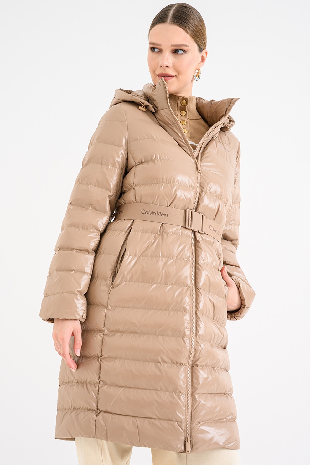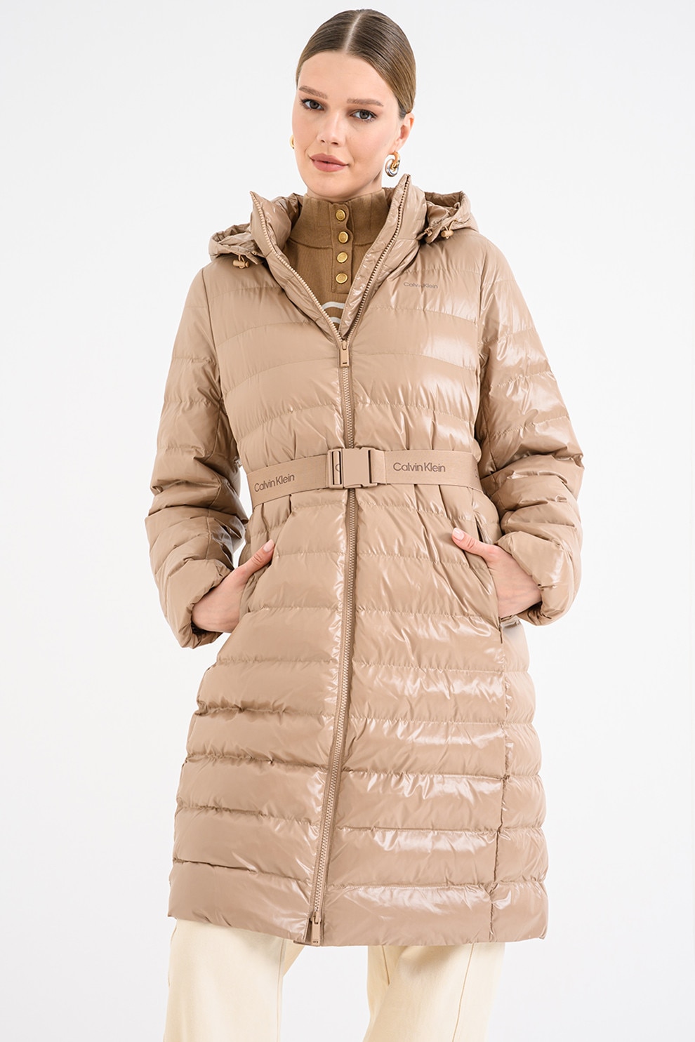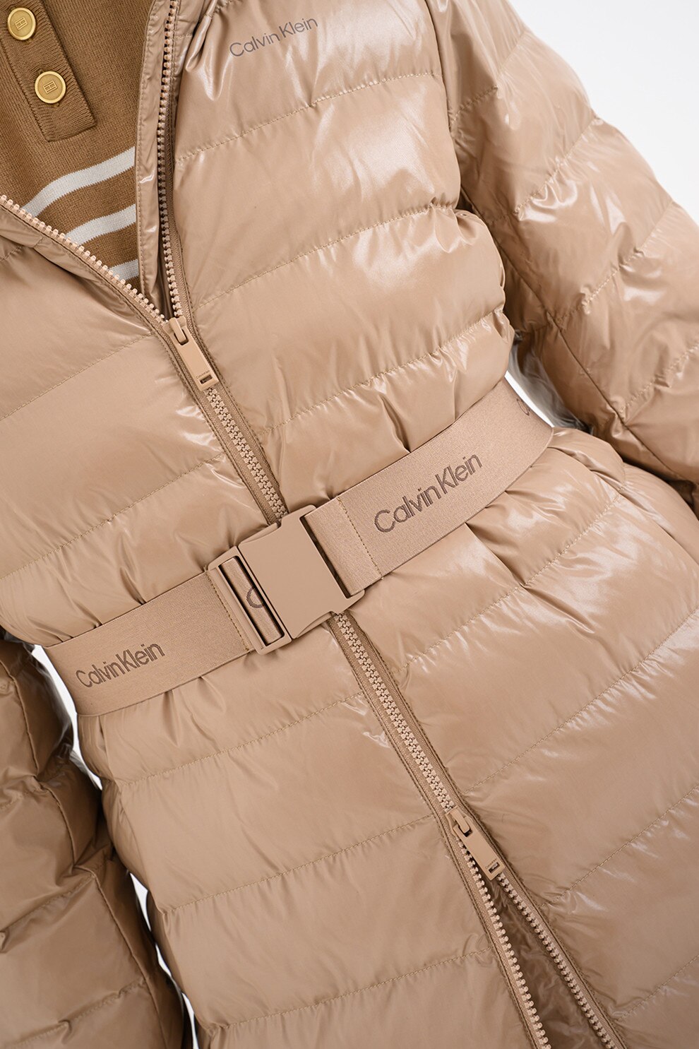 CALVIN KLEIN, Дълго зимно яке с цип, Камел
