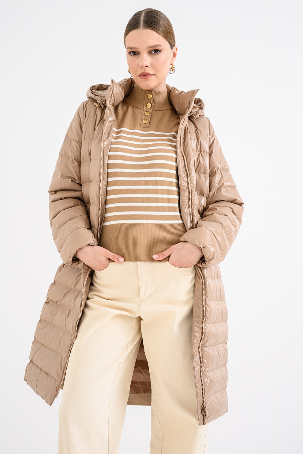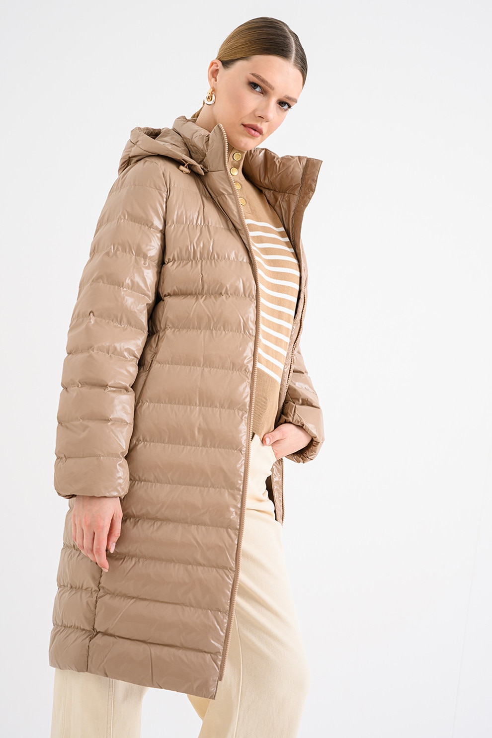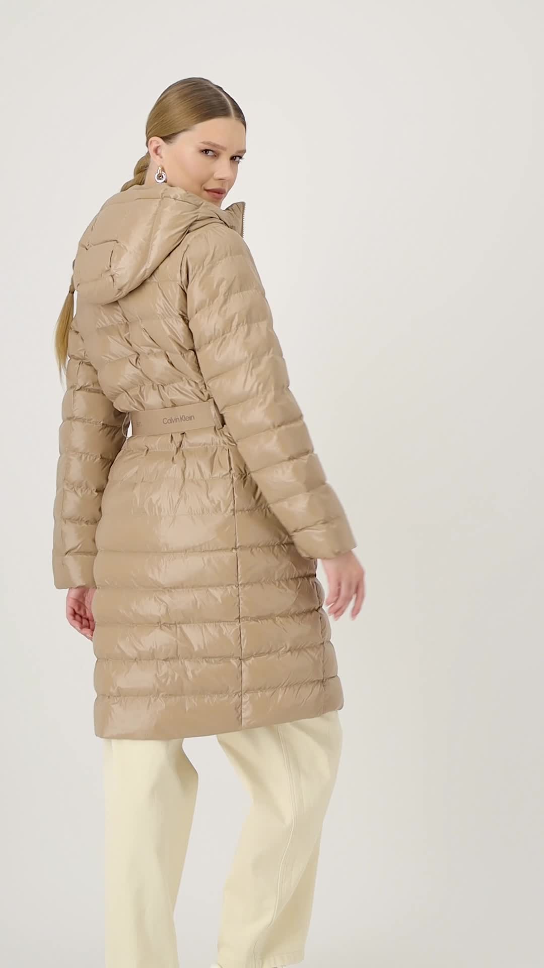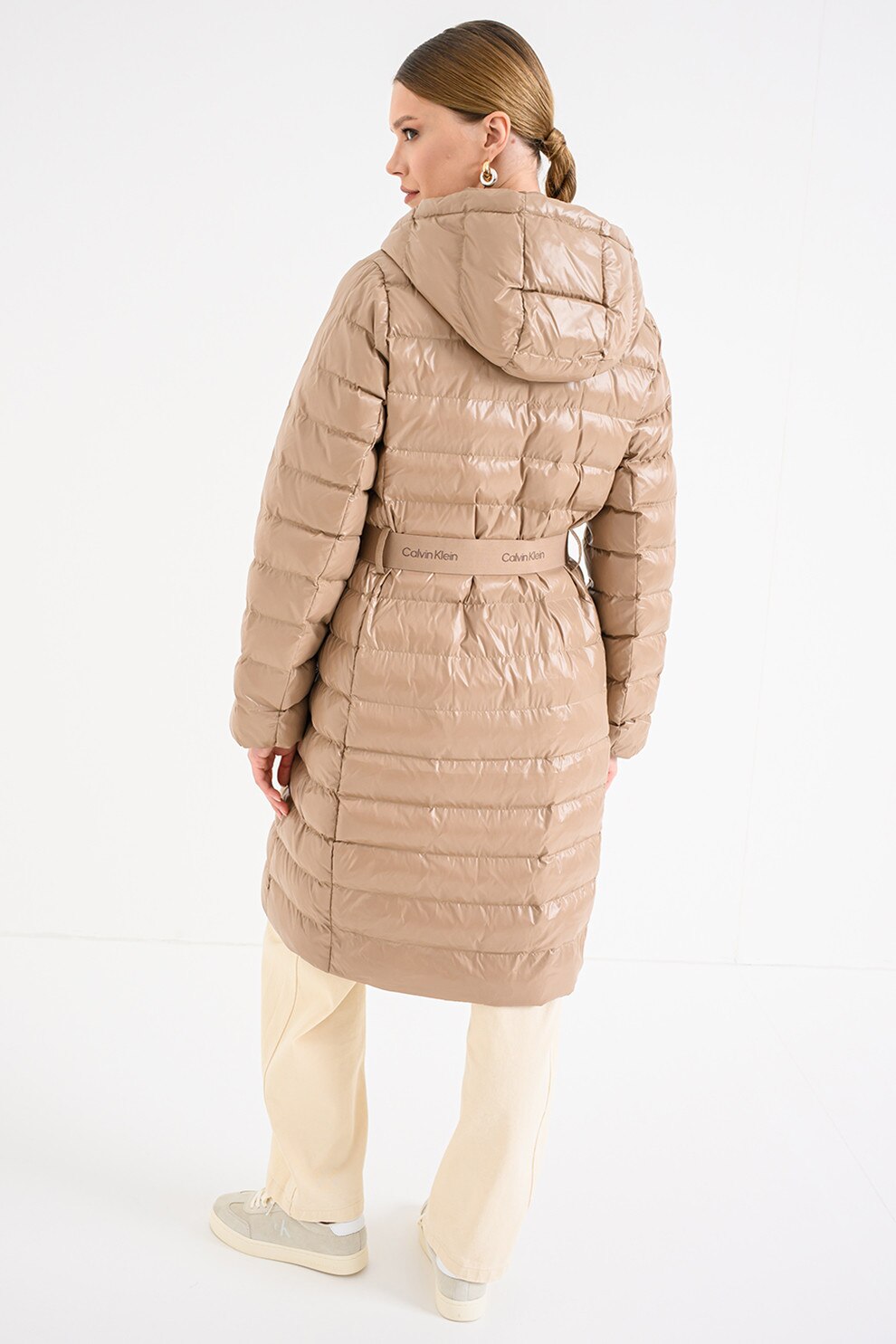 CALVIN KLEIN, Дълго зимно яке с цип, Камел