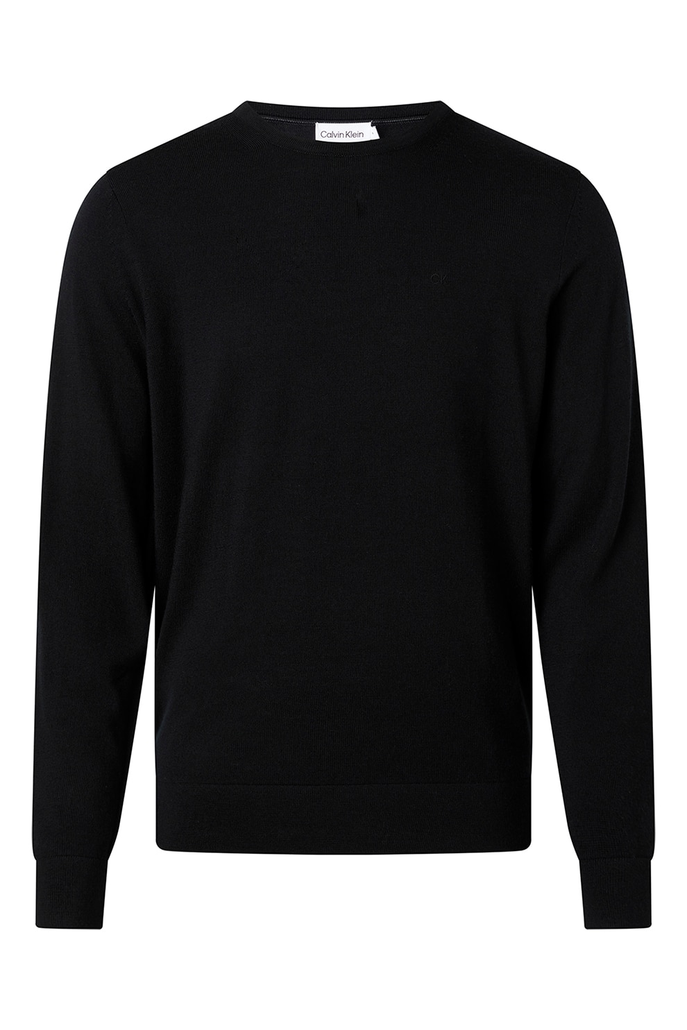 CALVIN KLEIN - Фино плетен пуловер от мерино, Тъмно черно