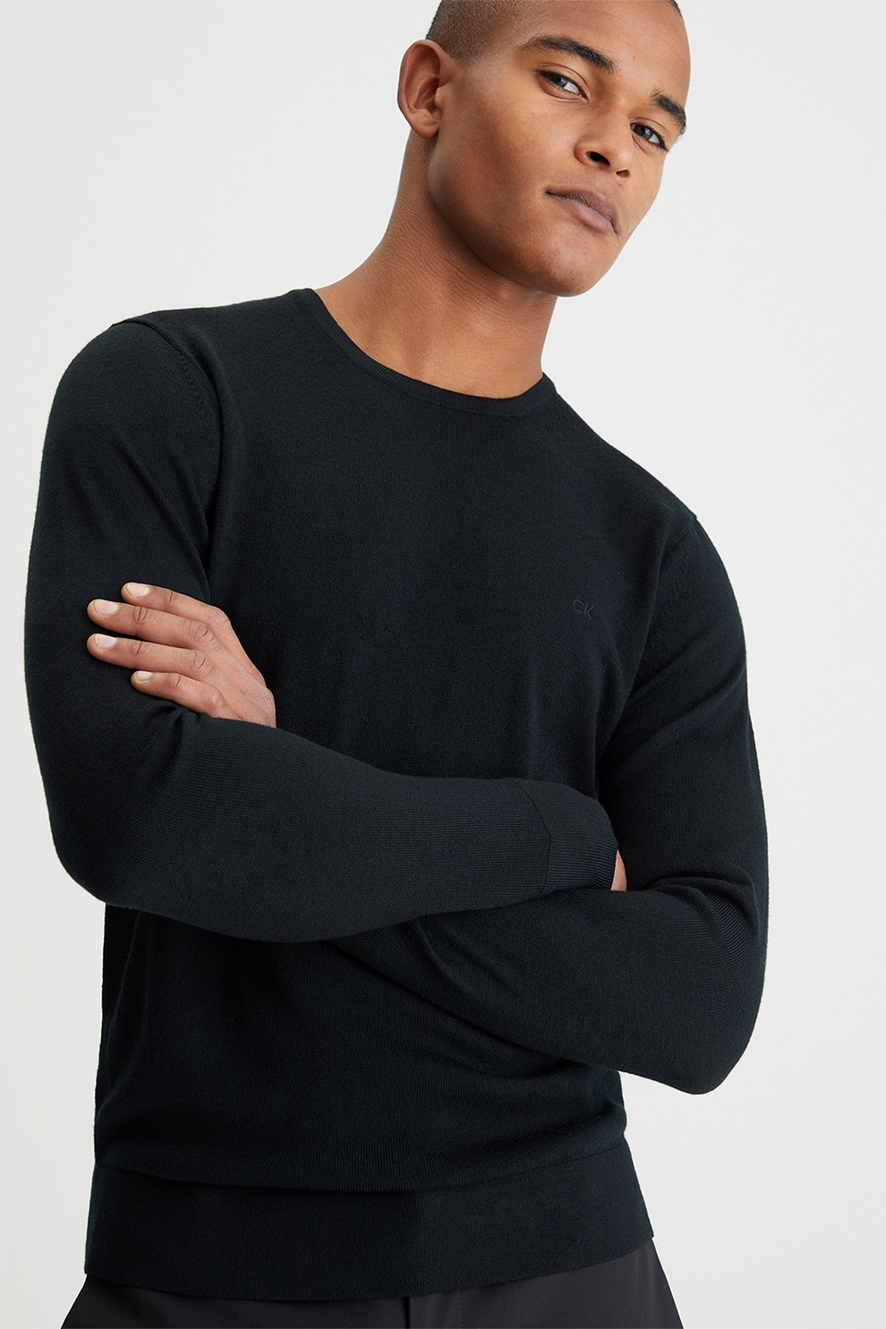 CALVIN KLEIN, Фино плетен пуловер от мерино, Тъмно черно