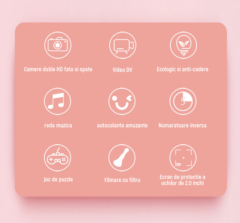 Цифров фотоапарат за деца, Vaxiuja, ABS, 93 x 42 x 61 мм, Двойна HD предна и задна камера, DV видео, Игри/музика, Розов