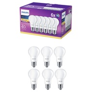 Комплект 6 крушки LED Philips, E27, 5.5W (40W), 470 лумена, A+, Бяла топла светлина