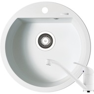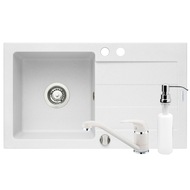 Комплект 3in1 гранитена мивка Pyramis Cristal + Смесител + Дозатор за течен сапун, 760x440mm, Дълбочина 170mm, Монтаж на плот, Ляво корито, Бял