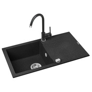 Комплект кухненска мивка + Смесител Kring Sevilla, Гранит, Обратима, 780x440 мм, Дълбочина 170 мм, Монтаж върху плот, Черна