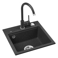Комплект кухненска мивка + Смесител Kring Sevilla, Гранит, 440x440 мм, Дълбочина 170 мм, Монтаж върху плот, Черна