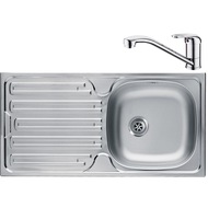 Комплект кухненска мивка Franke CIN 611 ST 860 + Смесител Narew, Единична команда, Керамичен патрон, Ляв отцедник, 860x435 мм, Инокс