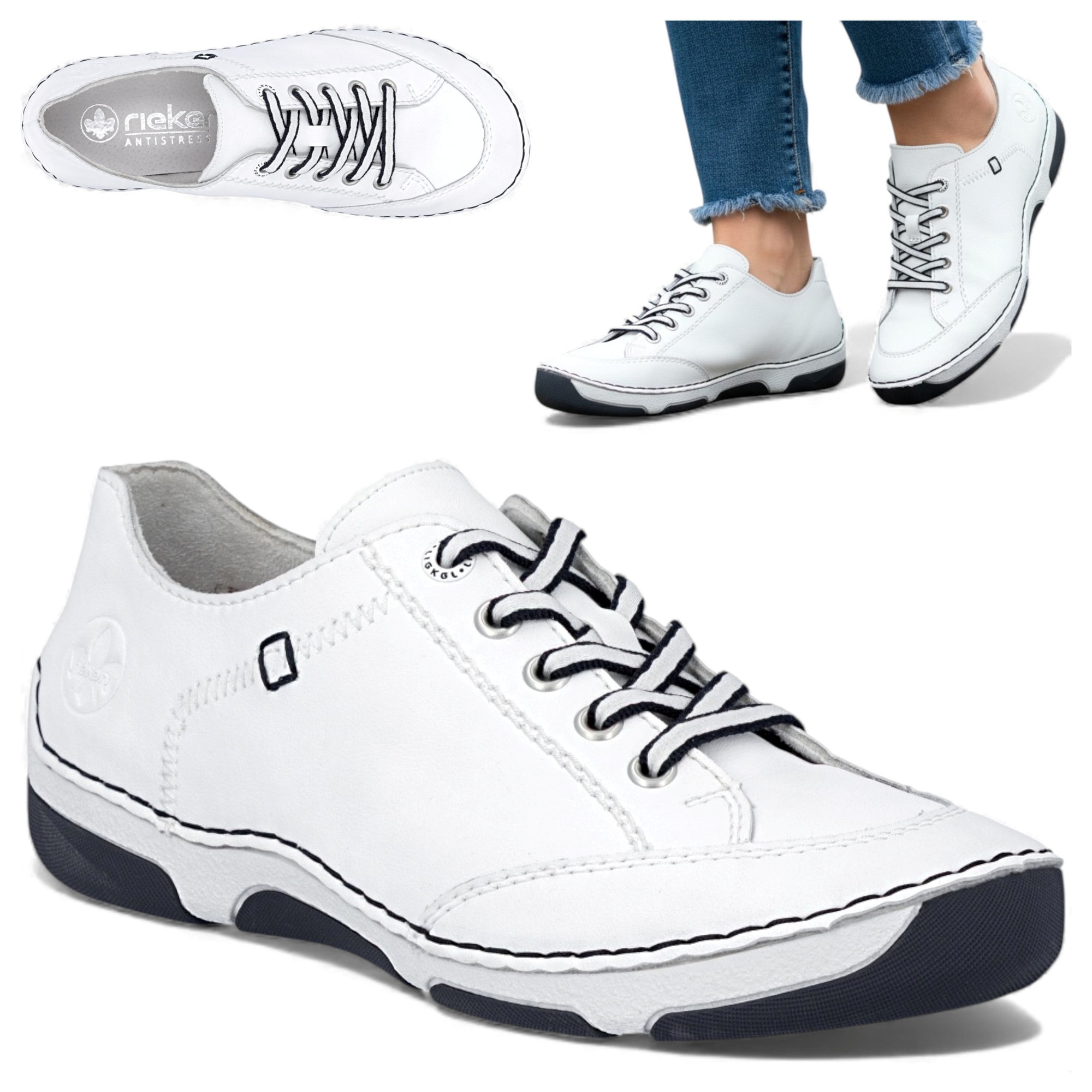 Дамски обувки, Rieker, без модел, естествена кожа, удобни, пролетни, бели, спортни, Бял