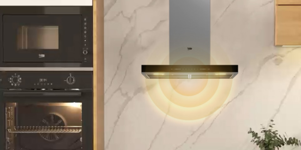 Декоративен абсорбатор за вграждане Beko BHCB96641BBHS, Мощност на абсорбиране 715 m3/h, HeatSense, Air Cleaning Mode, Booster, Регулируема светлина, Черен