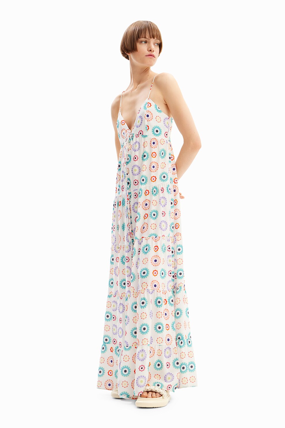 DESIGUAL - Дълга рокля с принт, Слонова кост/Виолетов/Тюркоаз
