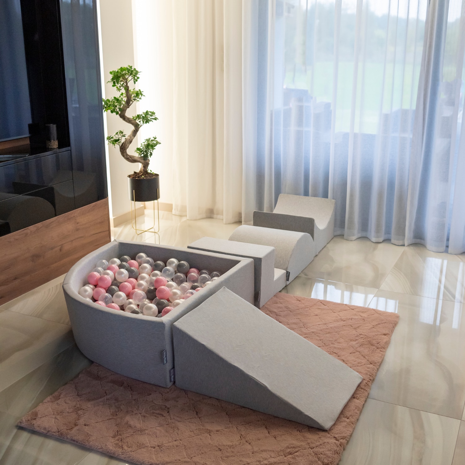 Ваната с топка KiddyMoon с пълнеж от пяна е невероятно забавление за детето и чудесна подкрепа за сетивните уменияһттр://!!!! Благодарение на формата и цвета си тя предлага разнообразни възможности за обзавеждане, както в модерния, така и в класическия дизайн на детската стая и дневната. Допълнителен характер придават цветните топки, които съответстват на предпочитанията на детето и образуват цялостни комплекти. Характеристики на басейна с топки:- идеален за забавление, развитие и терапия за сензорна интеграция,- солиден басейн с топки, устойчив на повреди, с пълнеж от пяна от най-високо качество,- покрит с покривало от приятна материя в много атрактивни цветове - голям, идеален за няколко деца- ципът позволява лесно сваляне на покривалото на басейна с топки, може да се пере в пералня (при 30 °C), така че продуктът да остане чист и привлекателен дълго време; Състав на материала :-Тъмно сиво: 20% памук, 72% полиестер, 8% еластан-светло сиво: 30% памук, 62% полиестер, 8% еластан-розово: 70% памук, 22% полиестер, 8% еластан Размери на ваната с топка: - кръгла с диаметър 120 см и височина 30 см - страници с дебелина 5 см и дъно от пяна. Комплектът за баня с топки може да съдържа от 200 до 1000 цветни топки с диаметър 7 см, които са безопасни за децата. На снимката е показана вана с топки, пълна с 600 топки. Топките имат сертификат CE. Приятни, леки и гъвкави: след изстискване те се връщат в първоначалната си форма, без да нараняват детето. материален състав на топките: 100% полиетилен, без BPAКидиМун басейн с топки и топките са изработени само от сертифицирани, висококачествени материали. играта трябва да се провежда под надзора на възрастен.