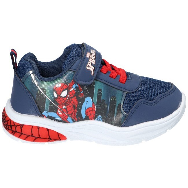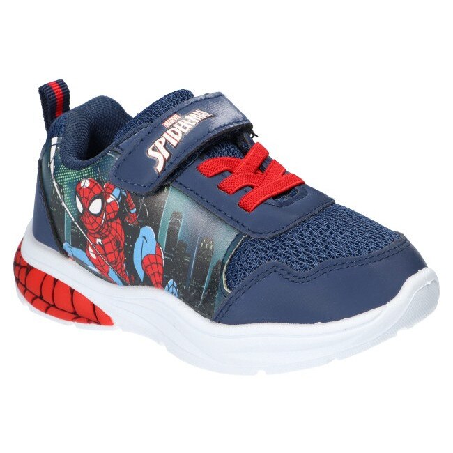 Детски спортни обувки, Marvel, Спайдърмен, Sp4345, Лицензирани маратонки, Регулируеми с велкро, Подметка със светлини, Тъмносин, Син/Тъмносин