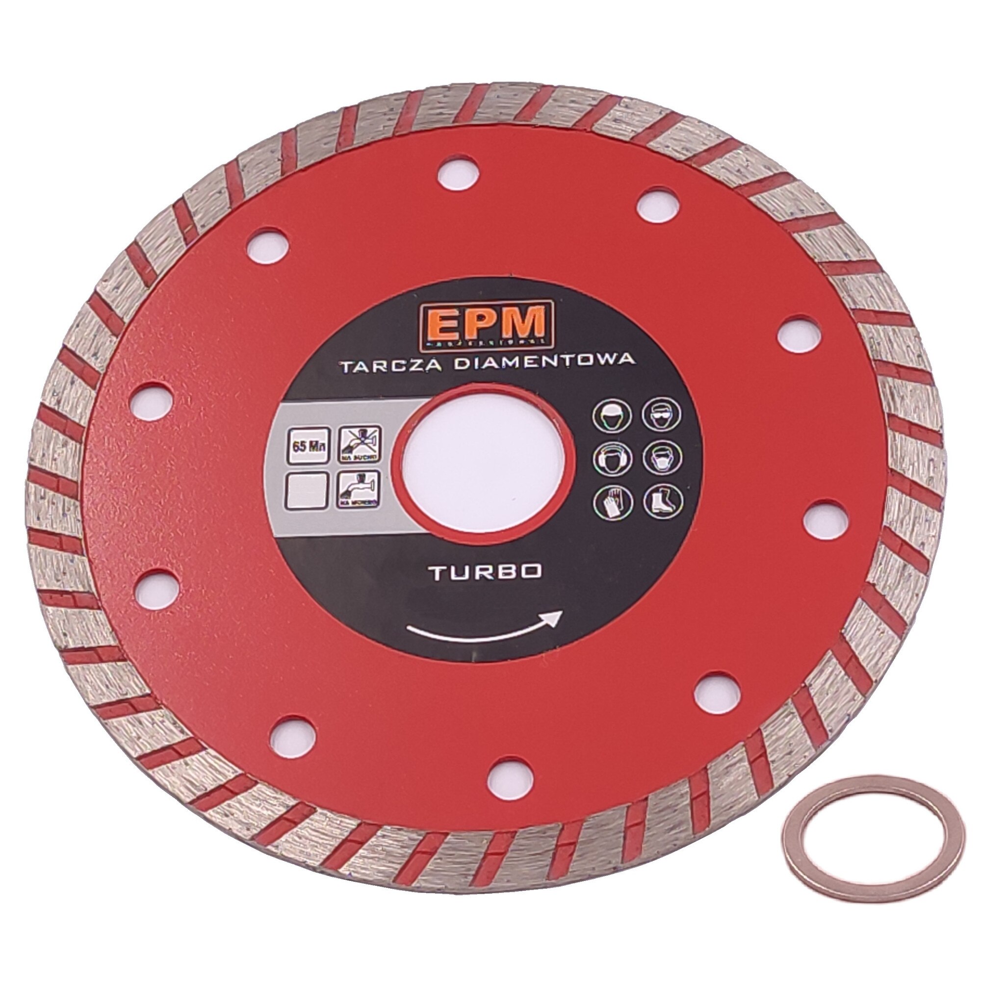 Диамантен турбо диск 250 мм, идеален за прецизно рязане на твърди материали като бетон, тухла, гранит, мрамор, фаянс и клинкер. Подходящ за използване с ъглошлайфи, резачки или триони за рязане. Монтажен диаметър 32 мм, с редукционен пръстен до 25,4 мм, осигурява универсална съвместимост. Може да се използва за сухо или мокро рязане, намалявайки праха и подобрявайки комфорта при работа. Максималната скорост на въртене е 6100 об/мин, с периферна скорост 80 м/с. Изработен от манганова стомана 65Mn със слой от диамантен прах, мед, желязо, никел и калай.