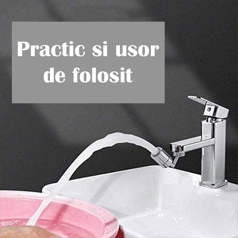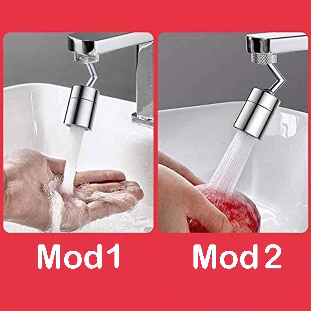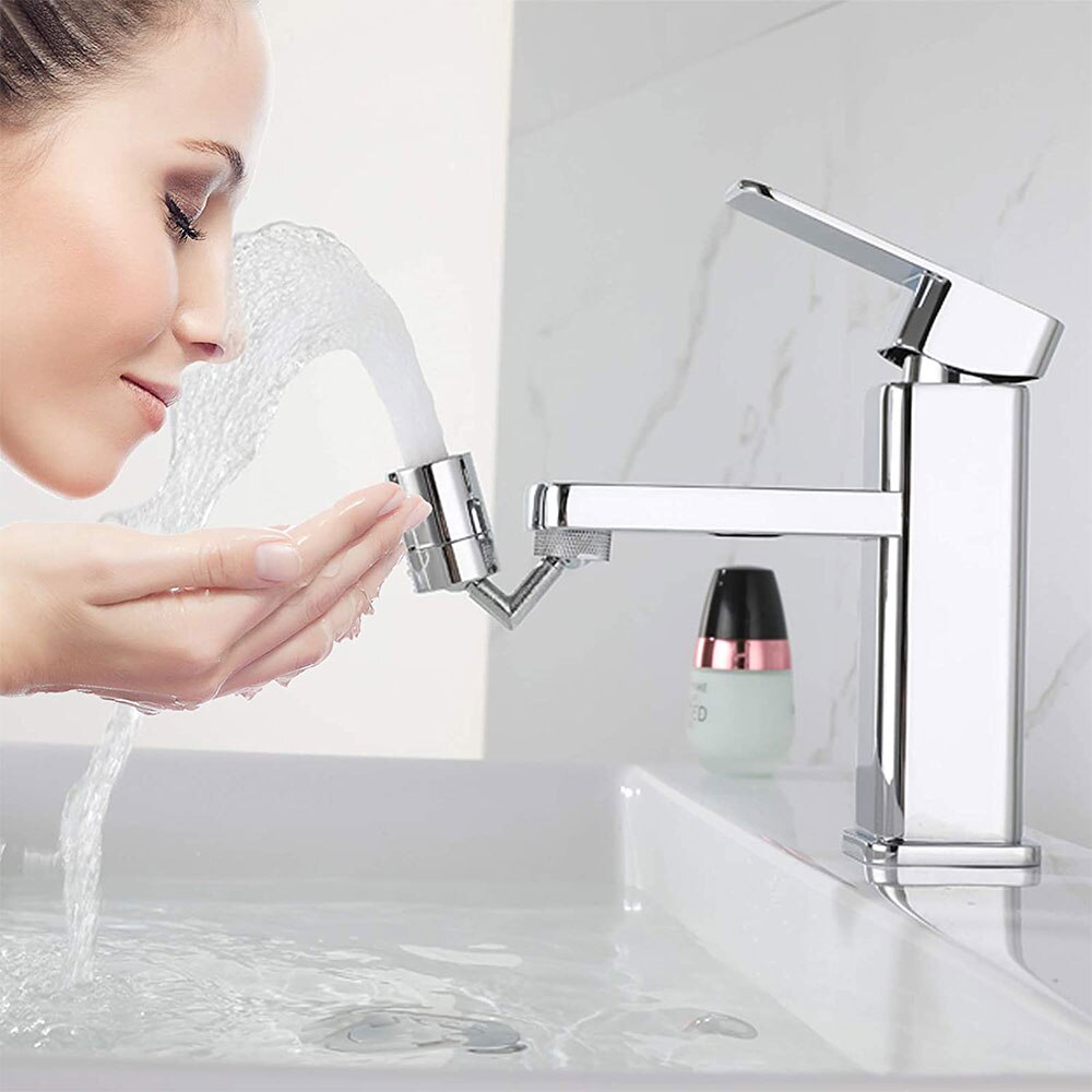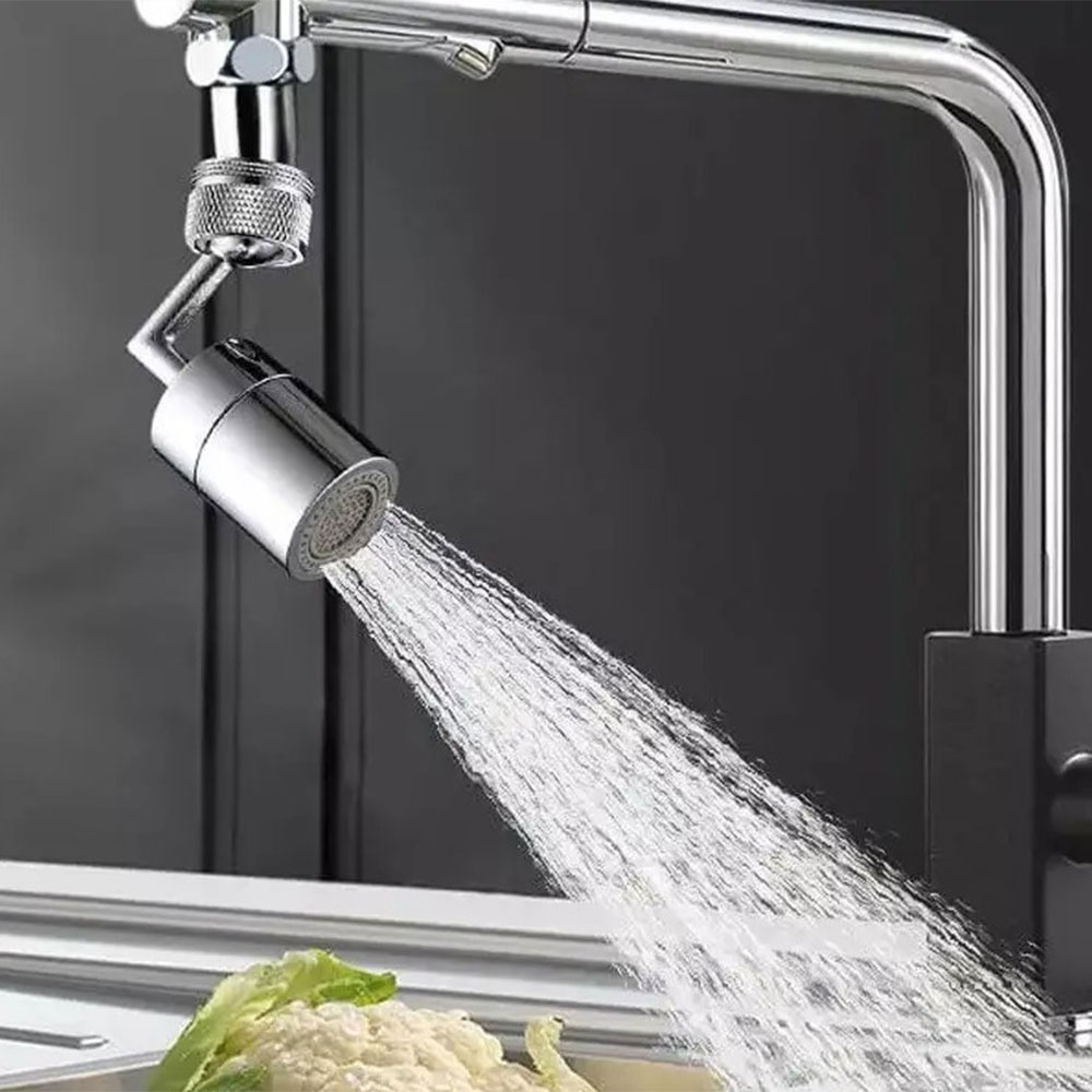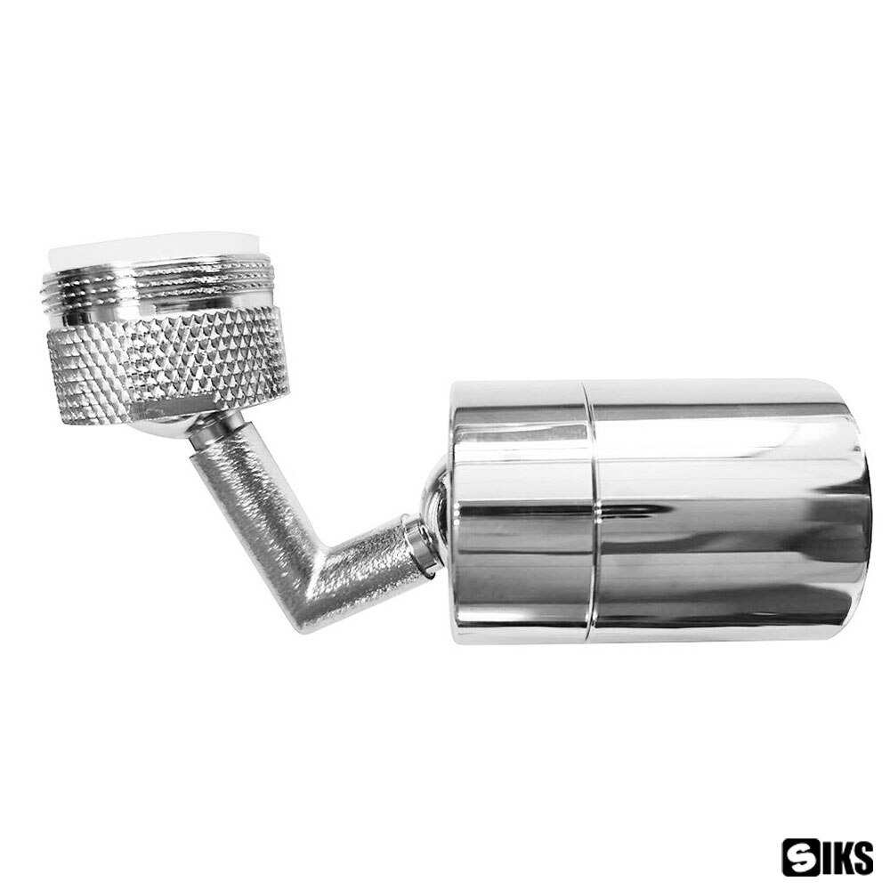 Двоен аератор за вода SIKS, въртящ се с коляно, функция економайзер, удължител за кран с филтрация, керамично ядро, два режима на душ/мехурчета, въртене на 720 градуса, дебит 4,5 л/мин, хром, сребрист