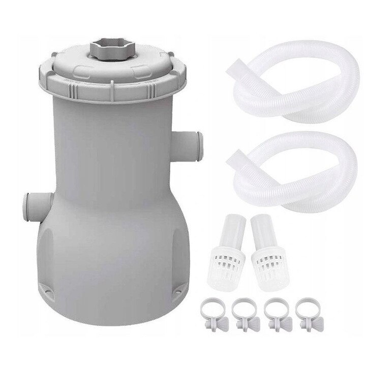 Филтърна помпа Polgar за басейн, 3028 л/ч, сива, комплект с филтър и маркуч