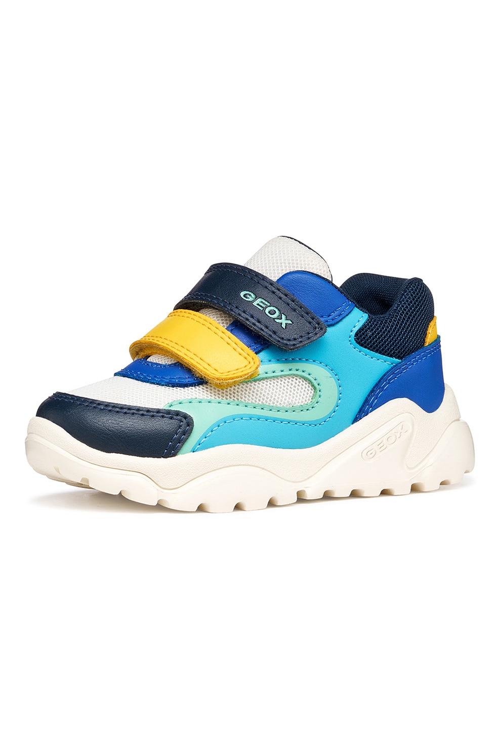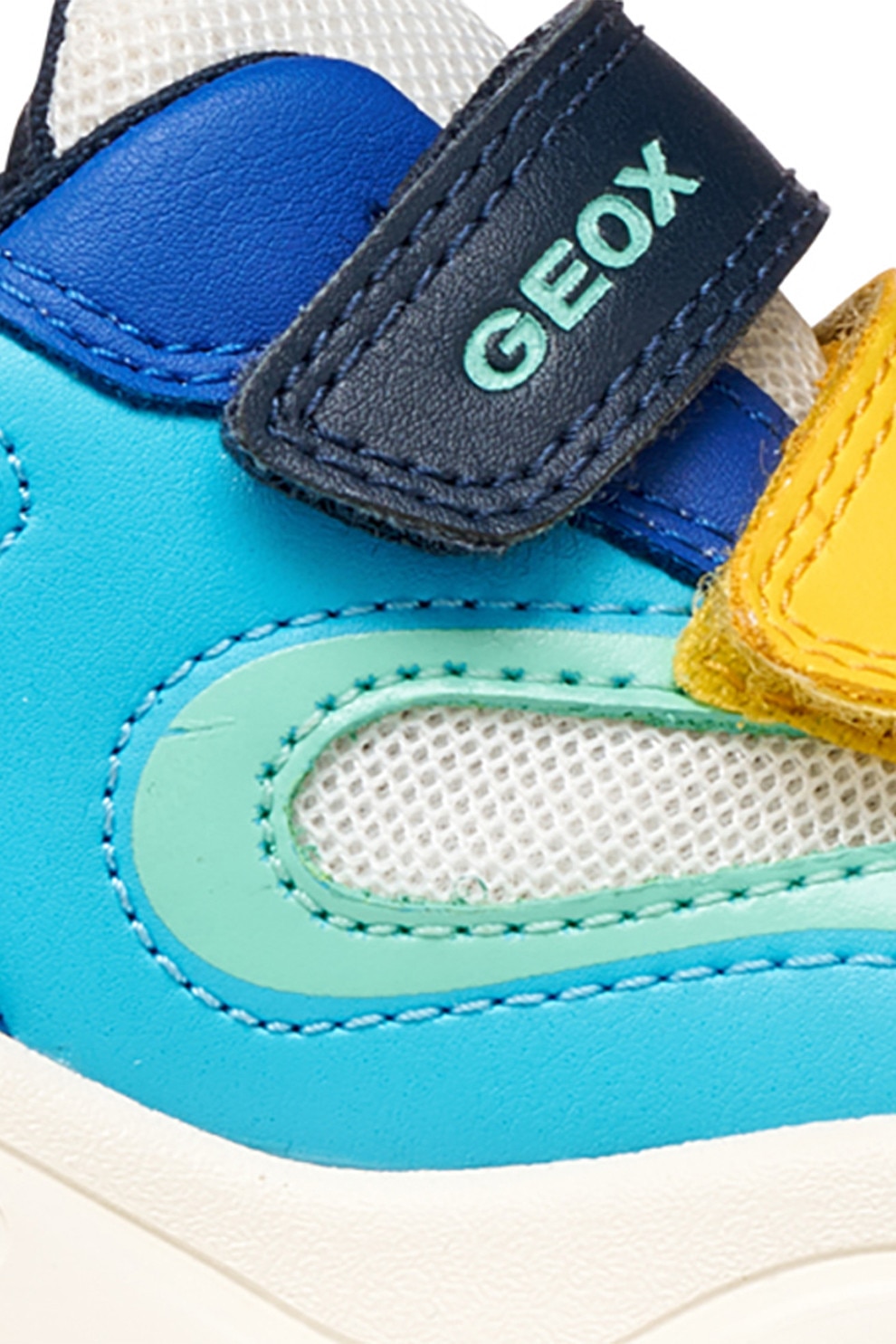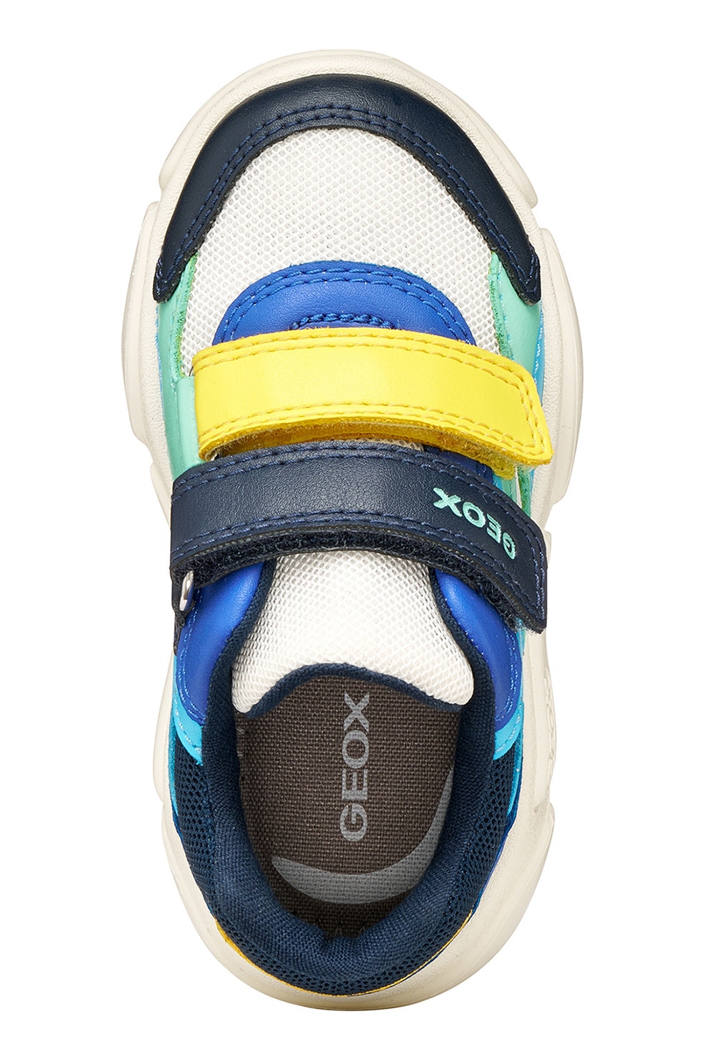 Geox - Маратонки Ciufciuf с мрежа, еко кожа и велкро, Бял/Тъмносин/Ментово зелено