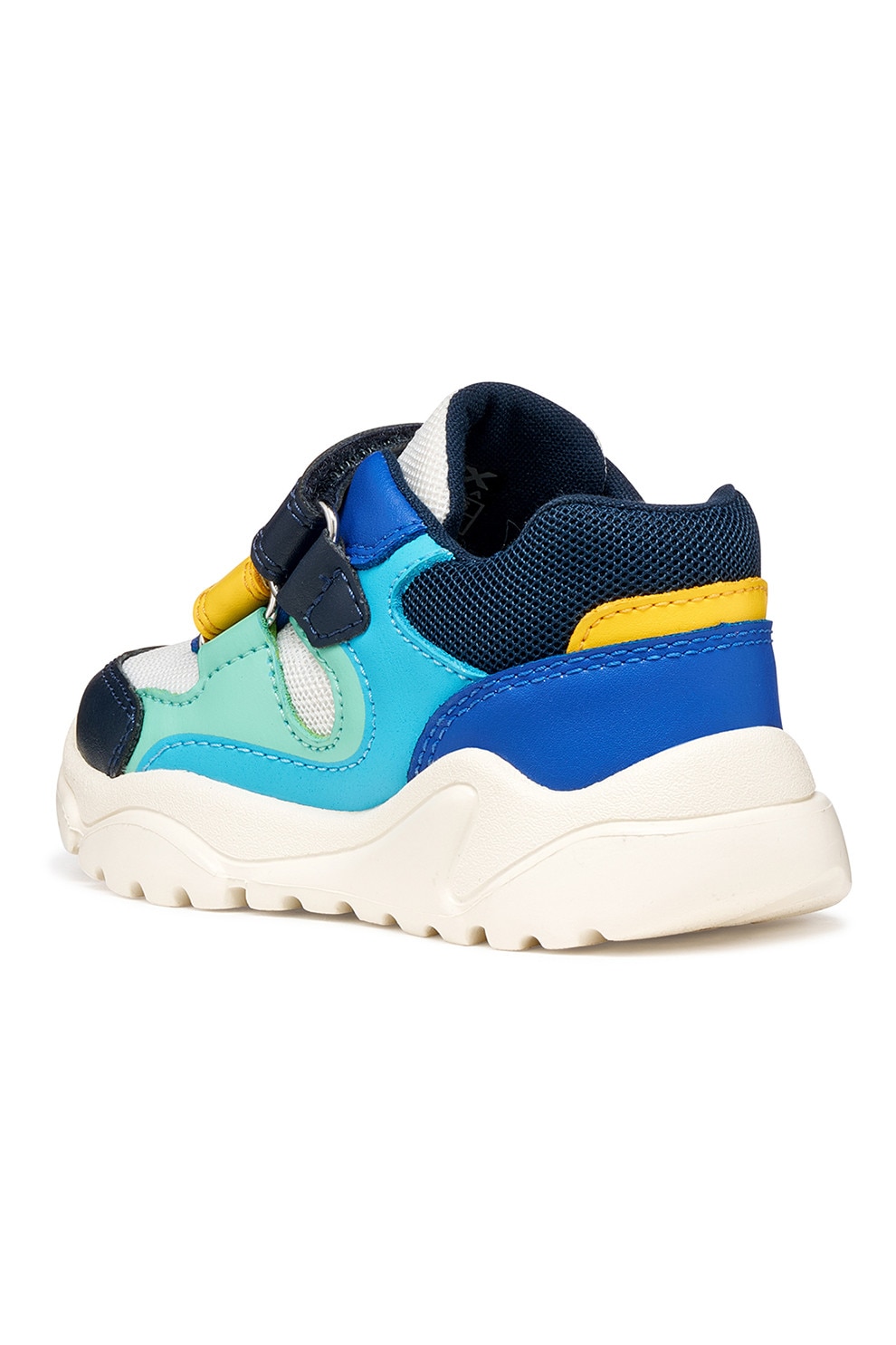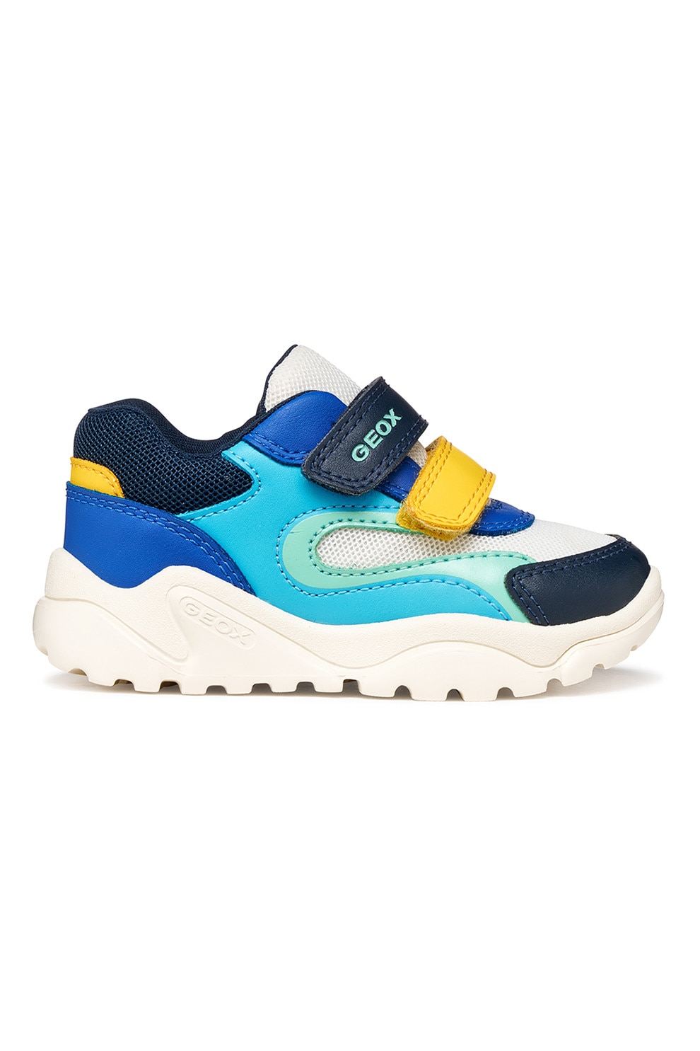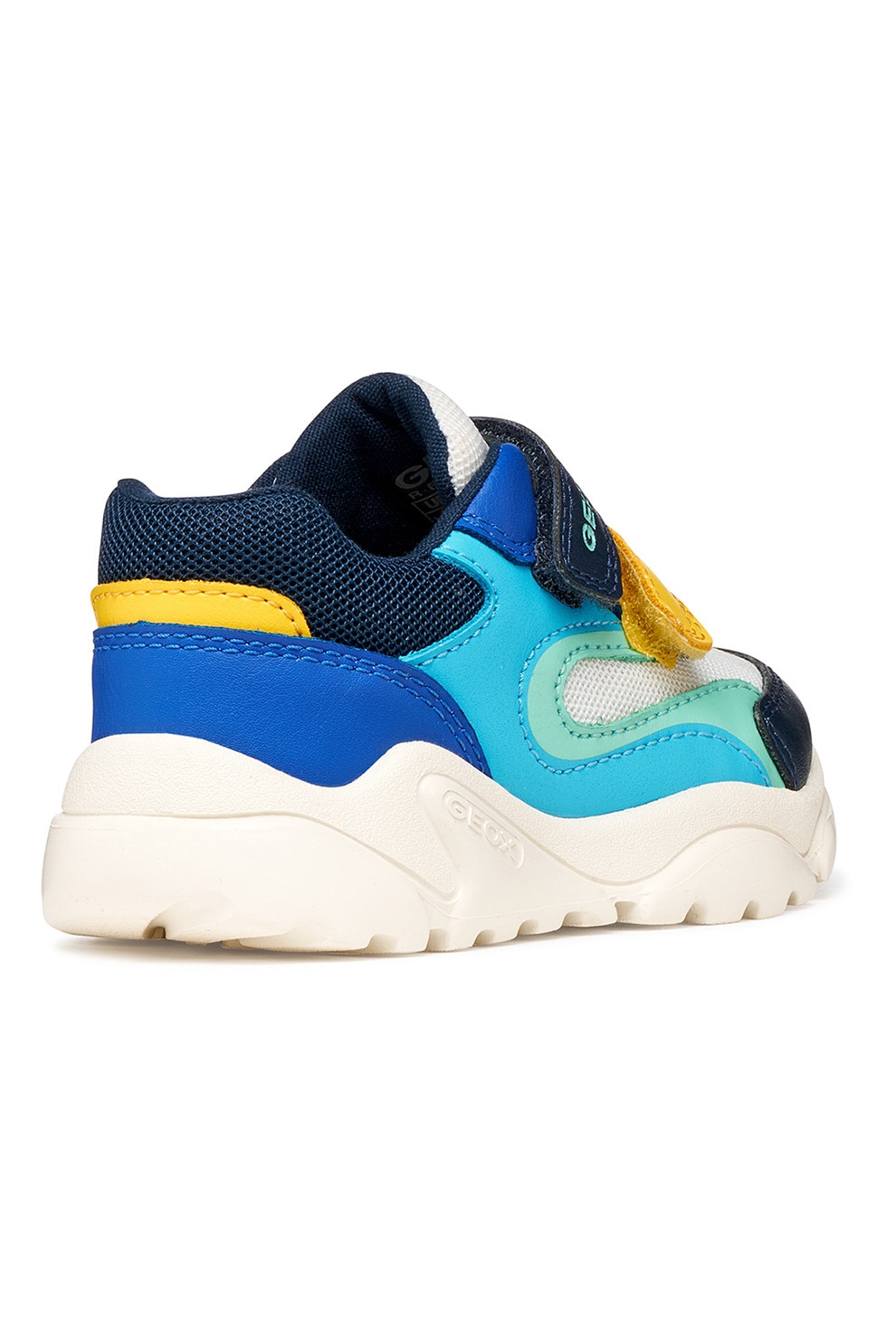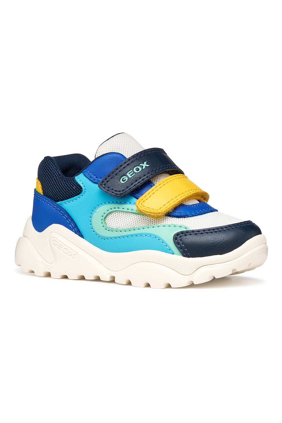 Geox - Маратонки Ciufciuf с мрежа, еко кожа и велкро, Бял/Тъмносин/Ментово зелено