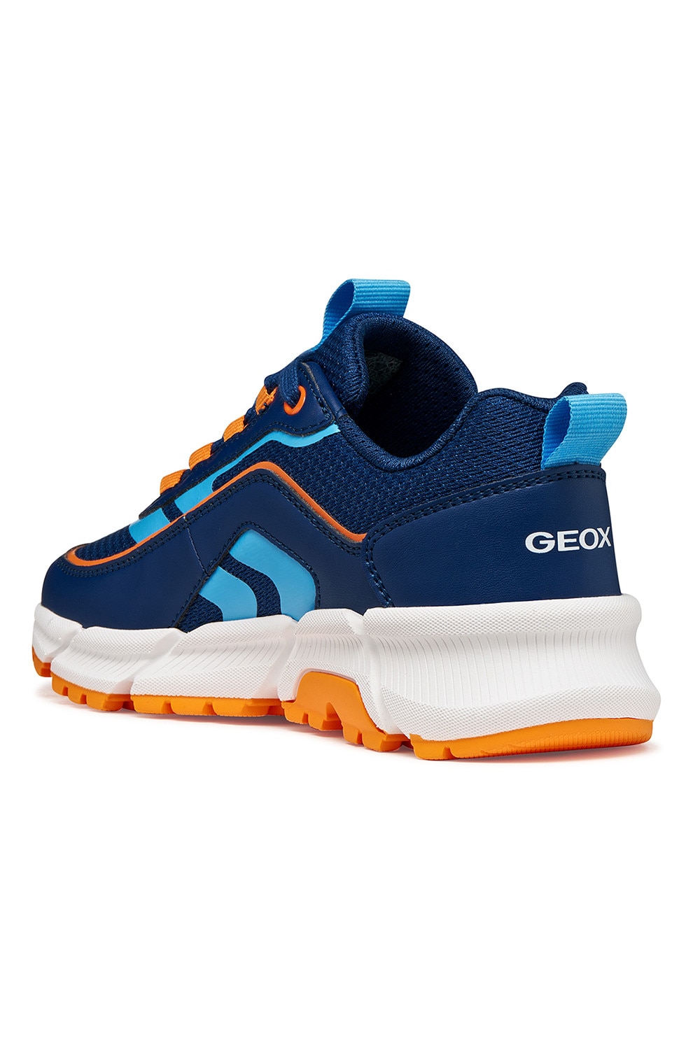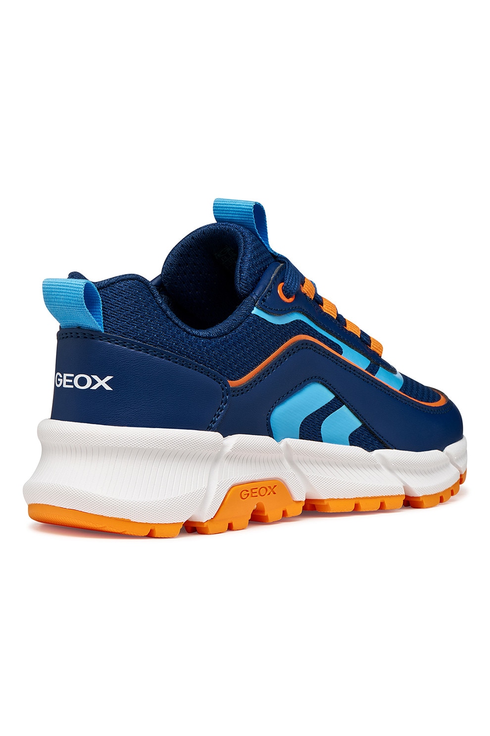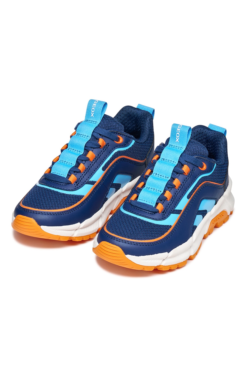 Geox - Маратонки от еко кожа с мрежа, Оранжев/Светлосин/Тъмносин