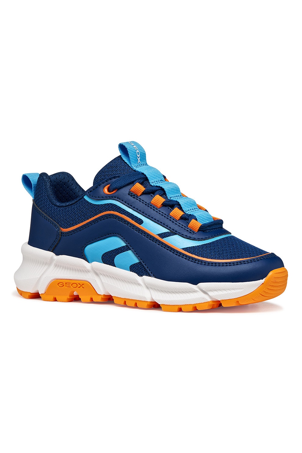 Geox, Маратонки от еко кожа с мрежа, Оранжев/Светлосин/Тъмносин