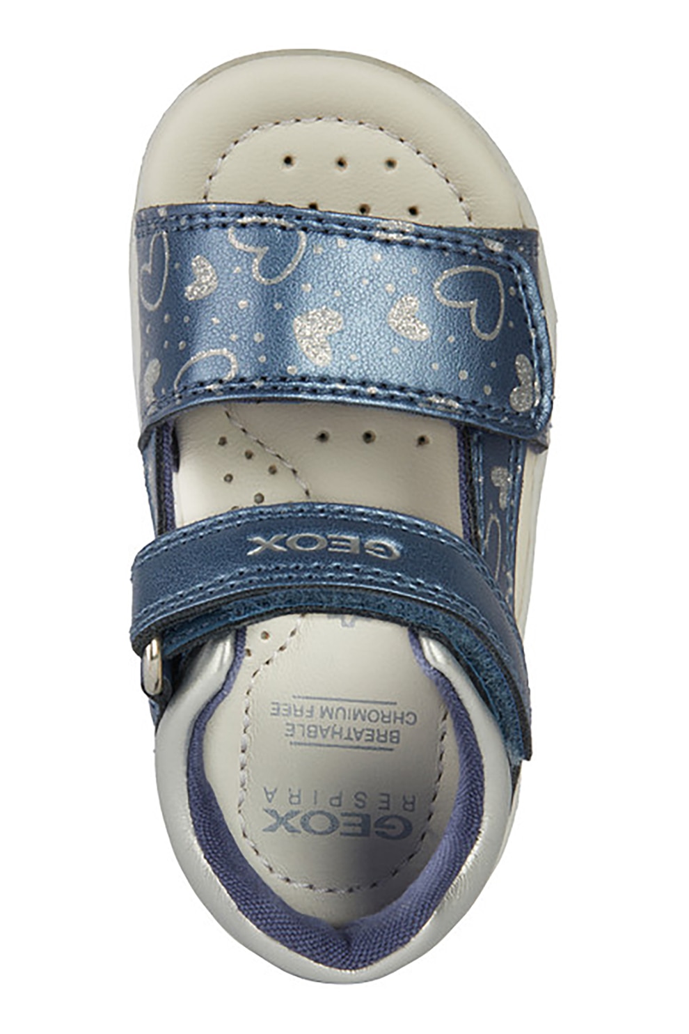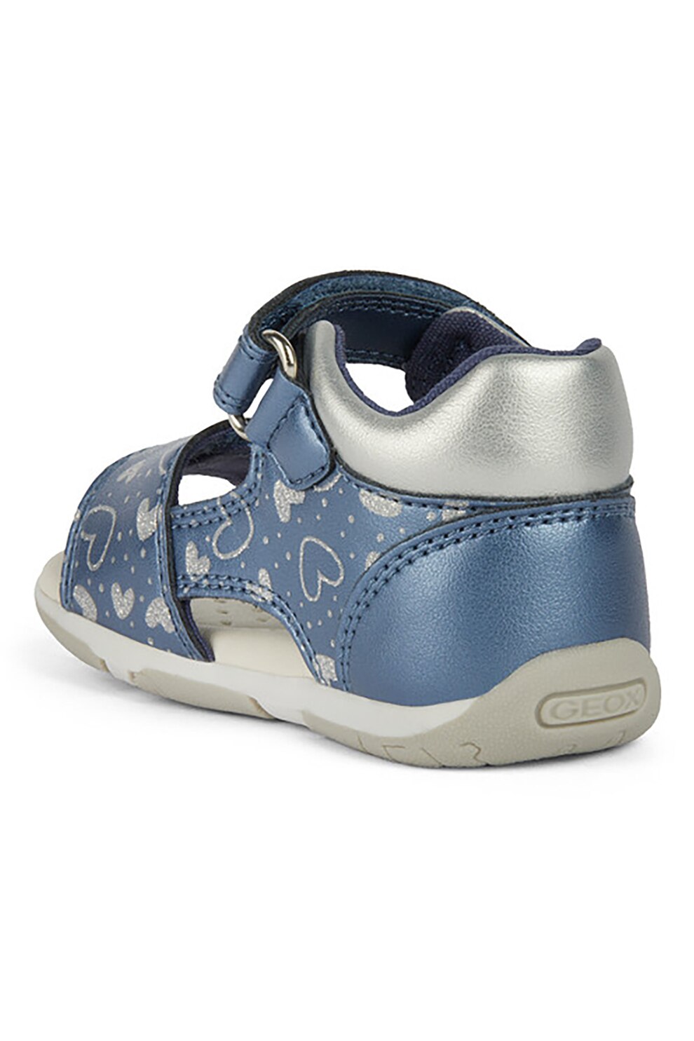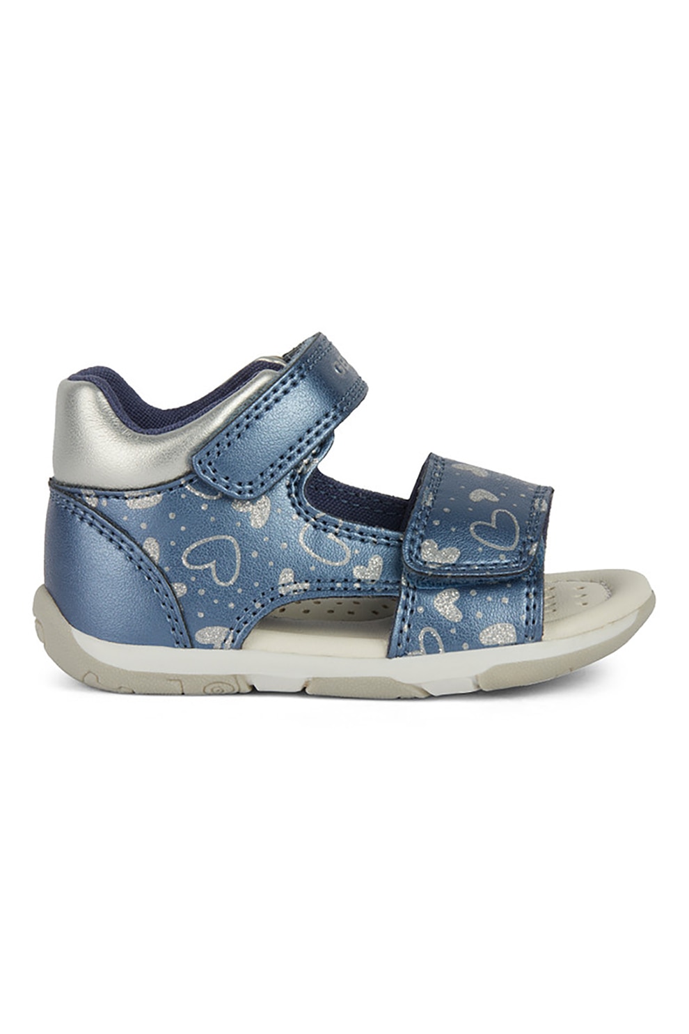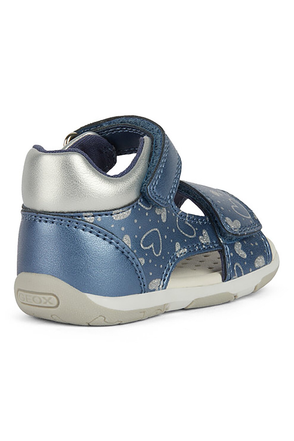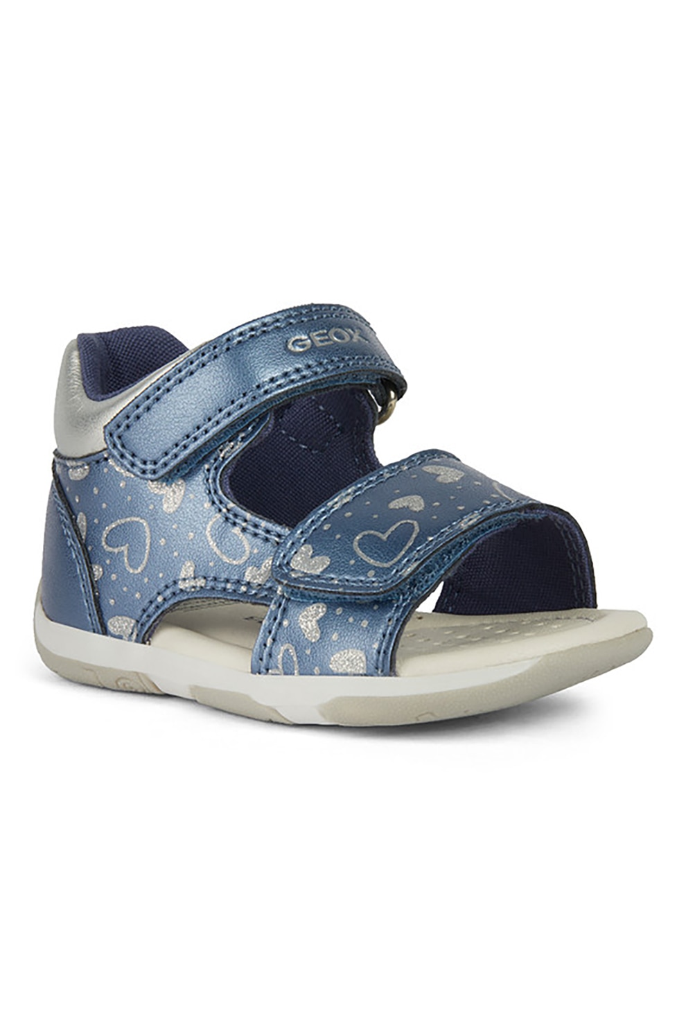 Geox - Сандали от еко кожа с шарка и велкро, Син/Сребрист