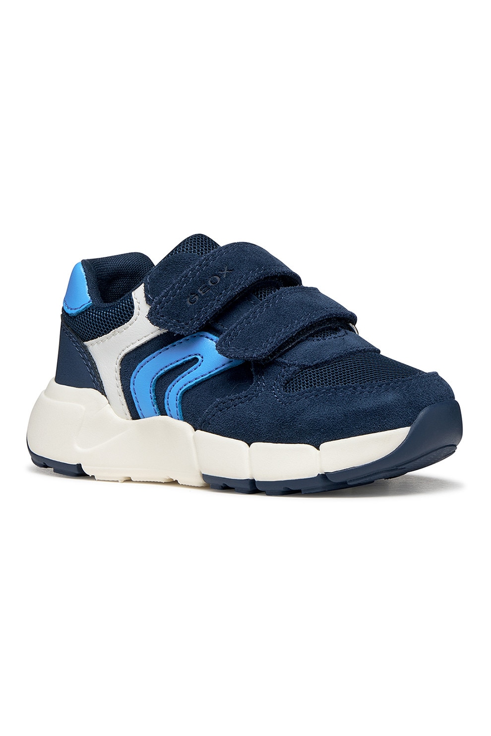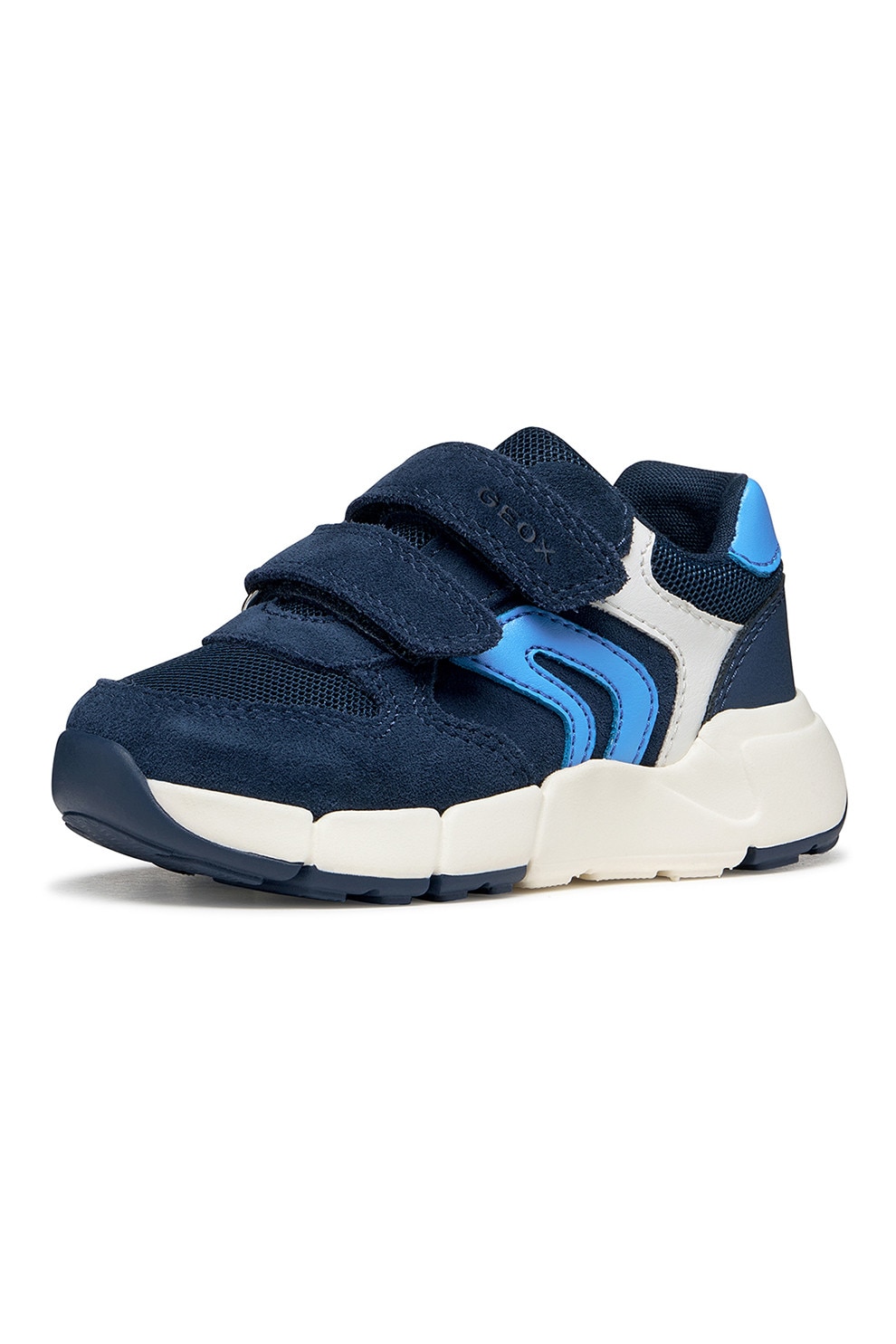 Geox - Скосени маратонки Flexyper с велкро и велур, Тъмносин