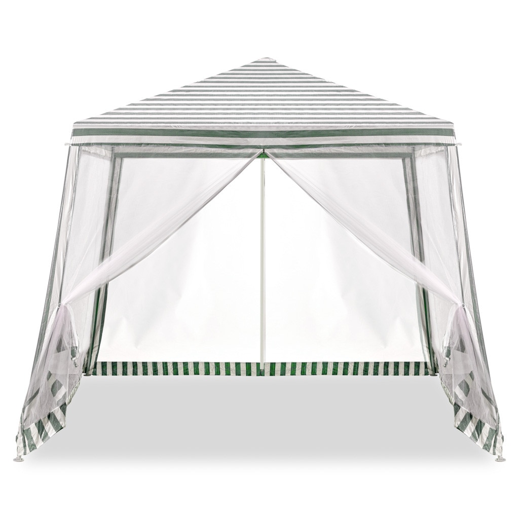 Градинска шатра-павилион, метална рамка, покривало от 90 г/м² PE материал, 4 стени от мрежа против комари, лесна за сглобяване, размер на покрива 2,4x2,4x2,45 м, размер на основата 3x3 м, бяло-зелено