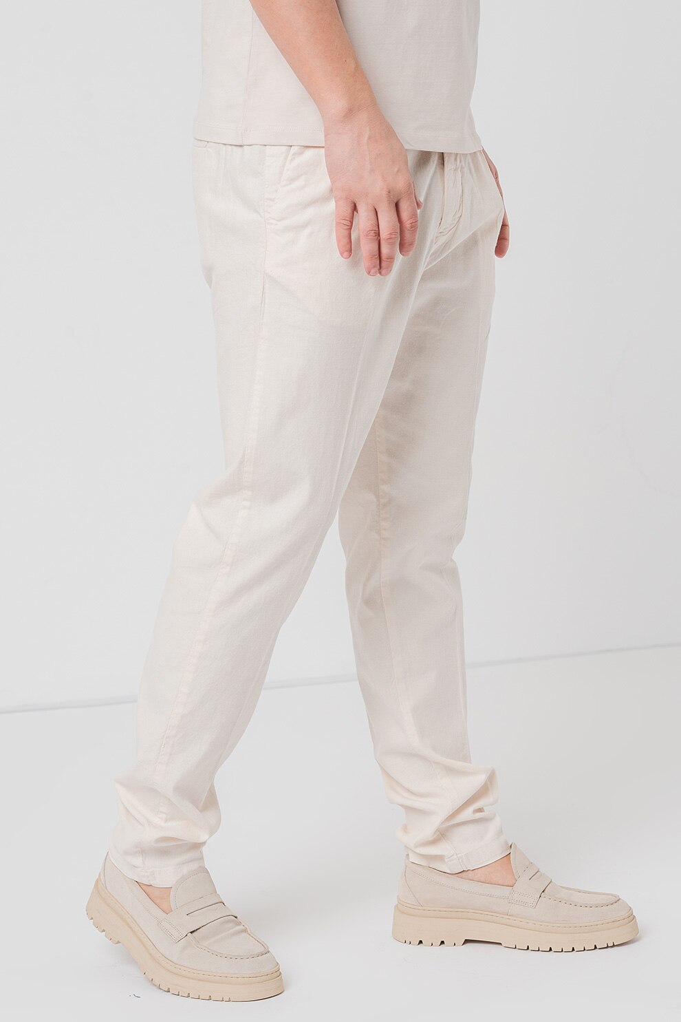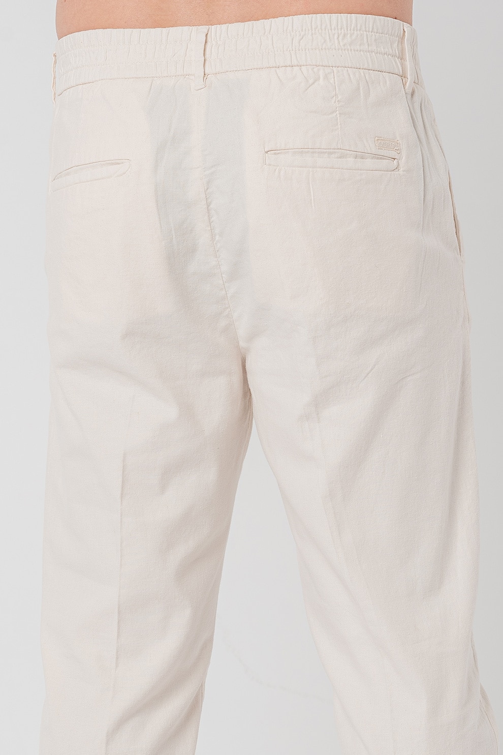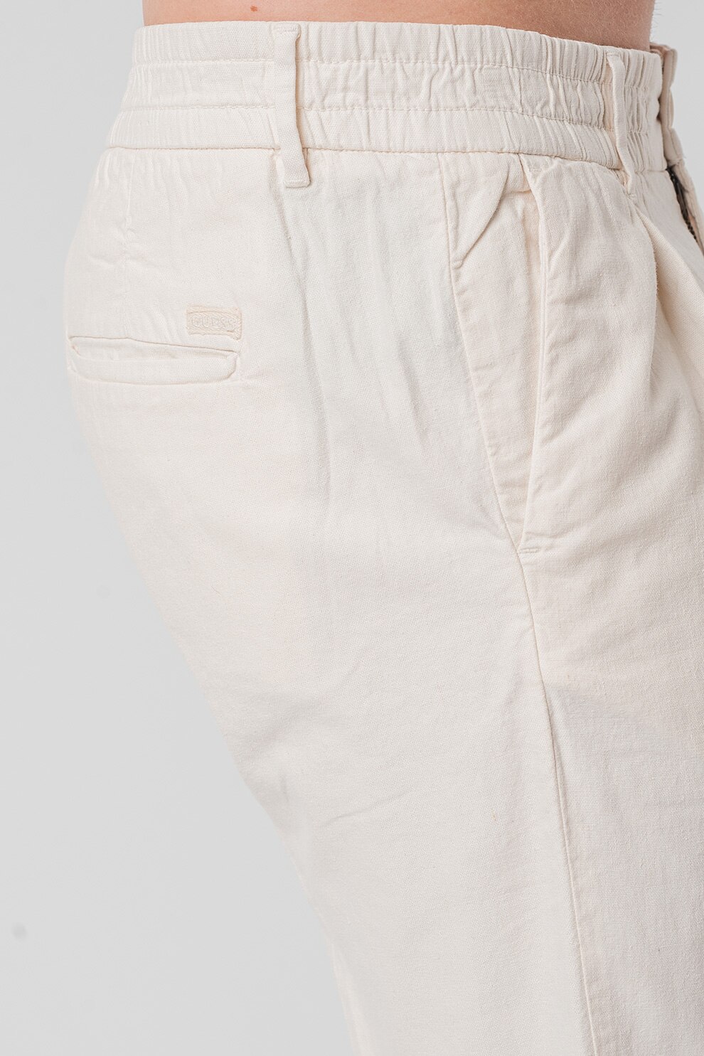 GUESS - Панталон Henry с лен и скосени джобове, Крем