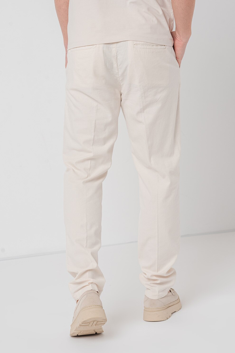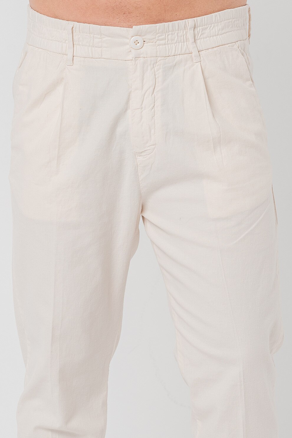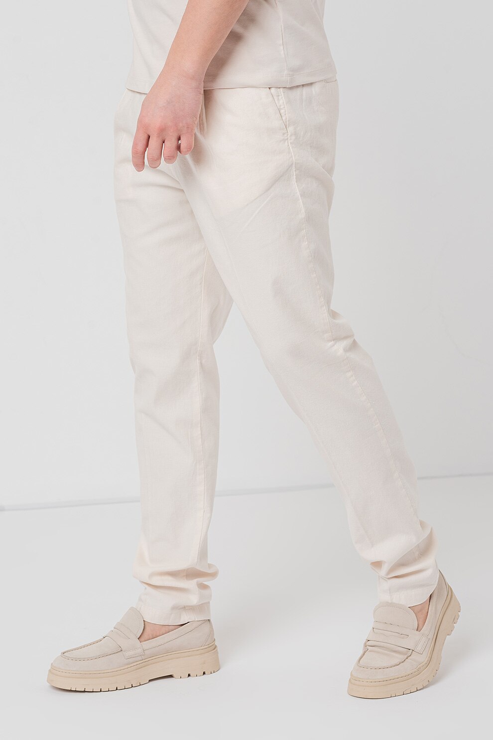 GUESS - Панталон Henry с лен и скосени джобове, Крем