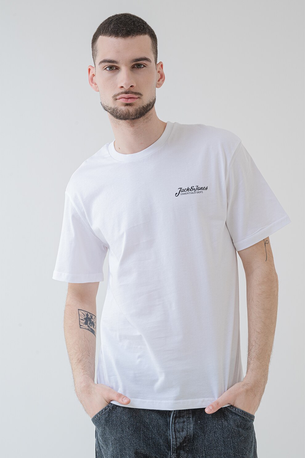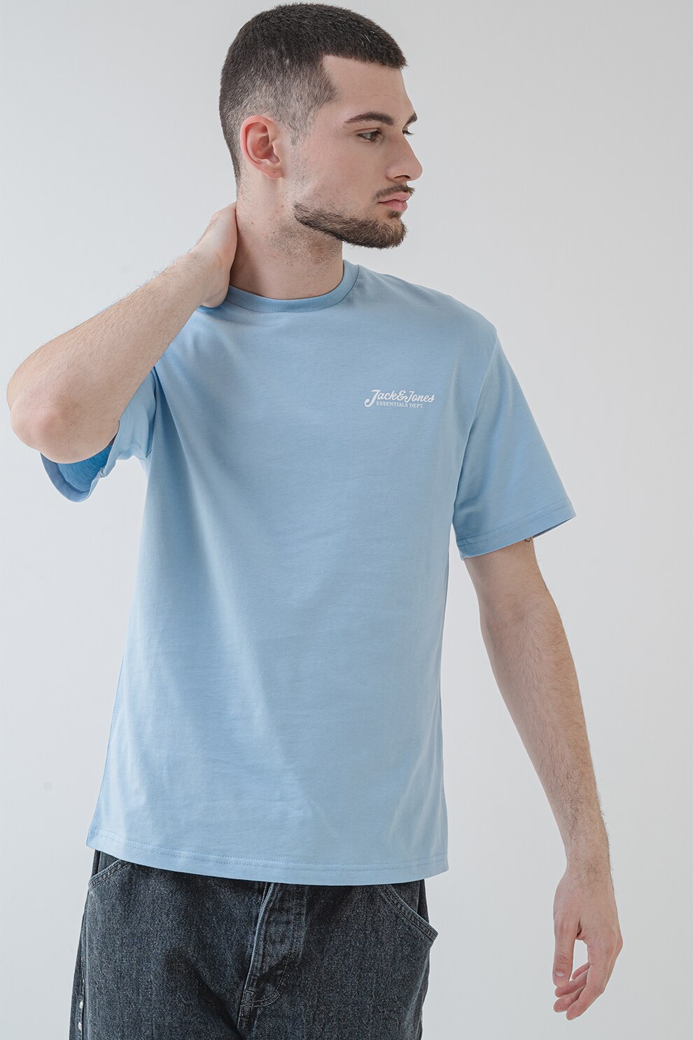 Jack & Jones, Тениска с овално деколте - 3 броя, Бял/Ултрамарин синьо/Лавандула