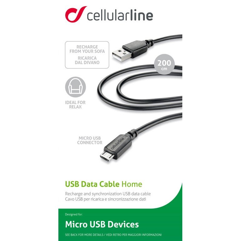 Кабел данни USB Cellular Line, micro USB, 2m, универсален