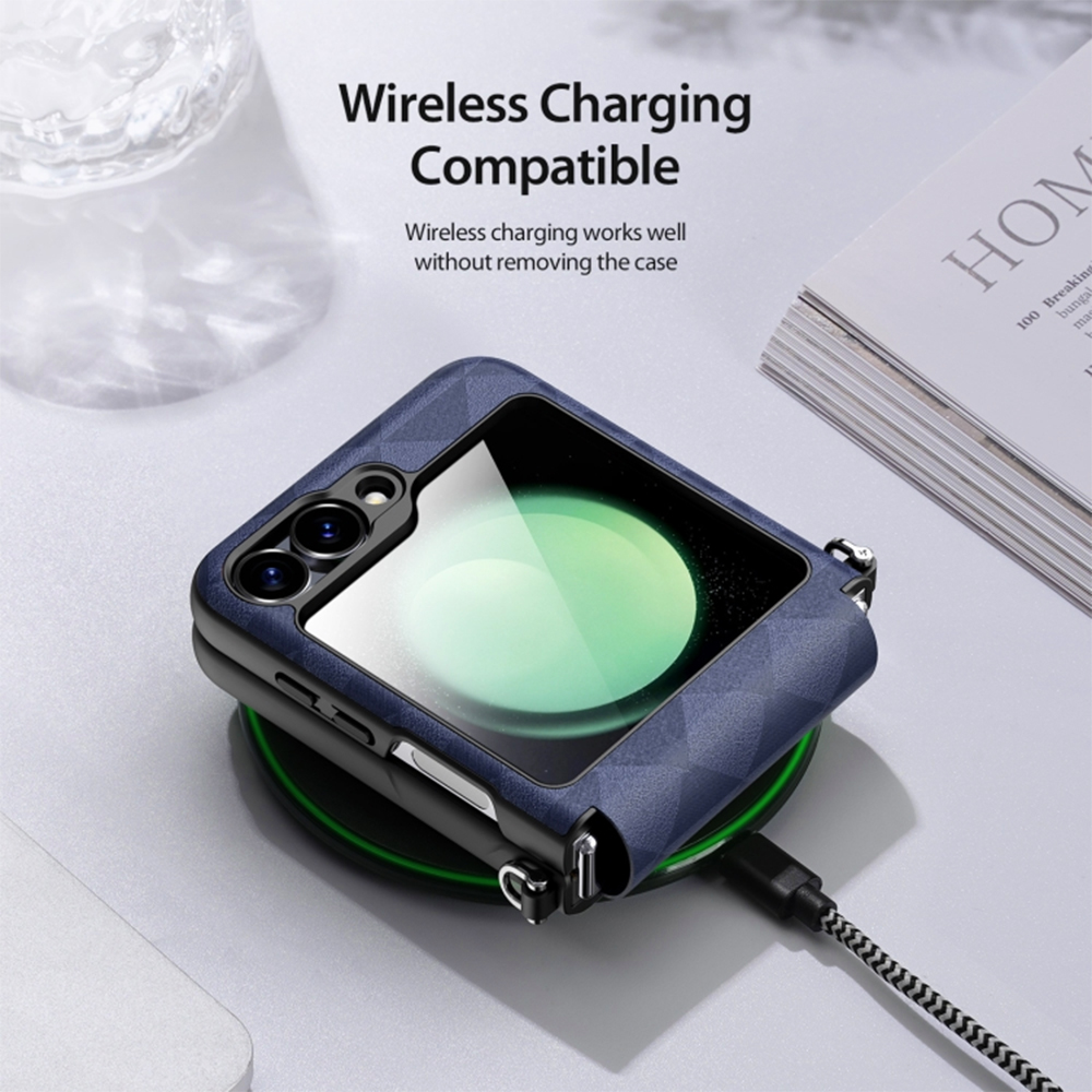 Калъф за Samsung Galaxy Z Flip6 / Flip 6, AntiShock, тънък елегантен дизайн, защита на пантите, PU кожа, безжично зареждане, черен