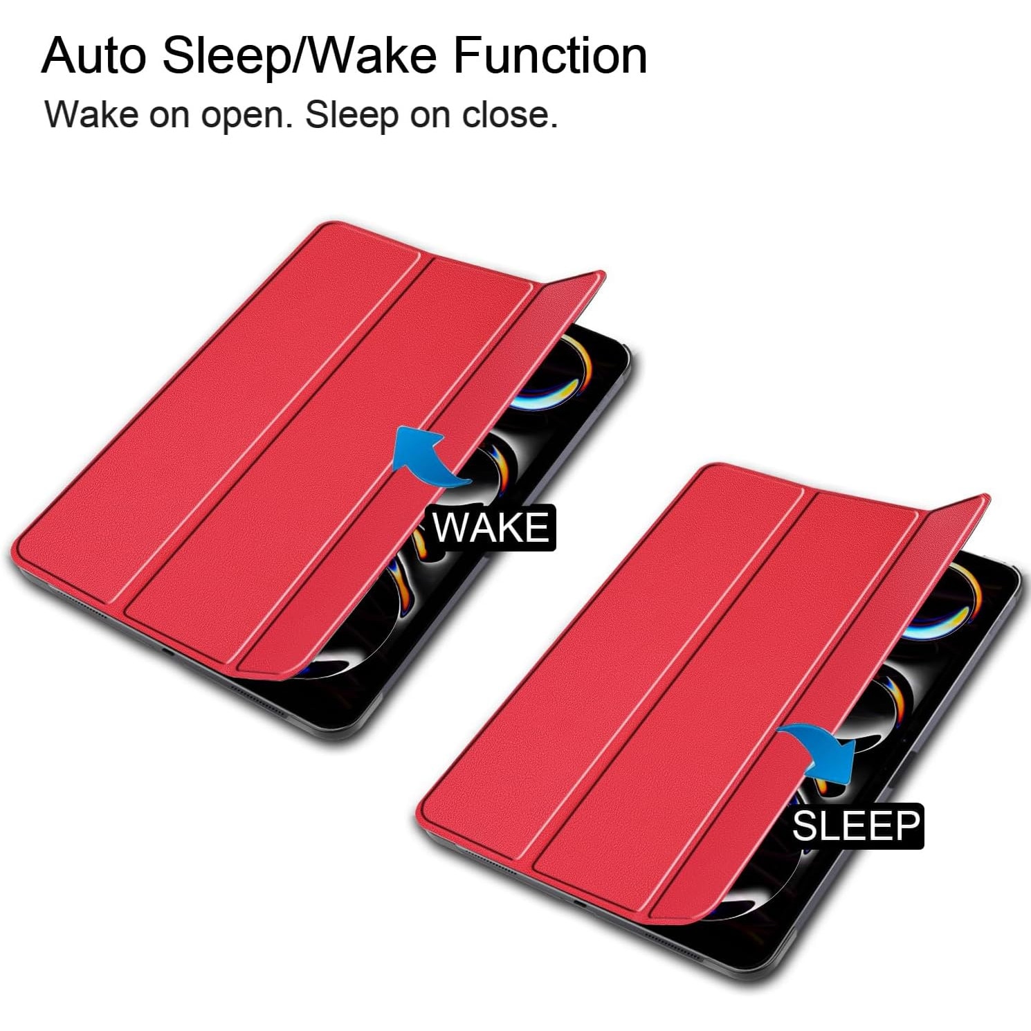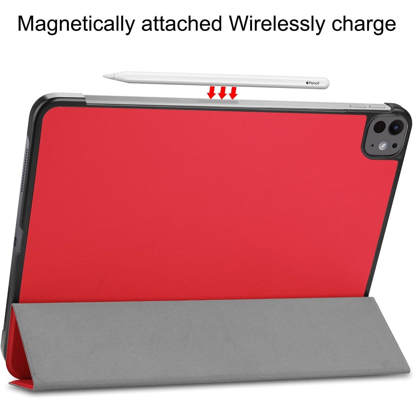 Калъф за таблет за iPad Pro 13" (2024), функция за автоматично заспиване/събуждане, тип стойка, 13 инча, червен