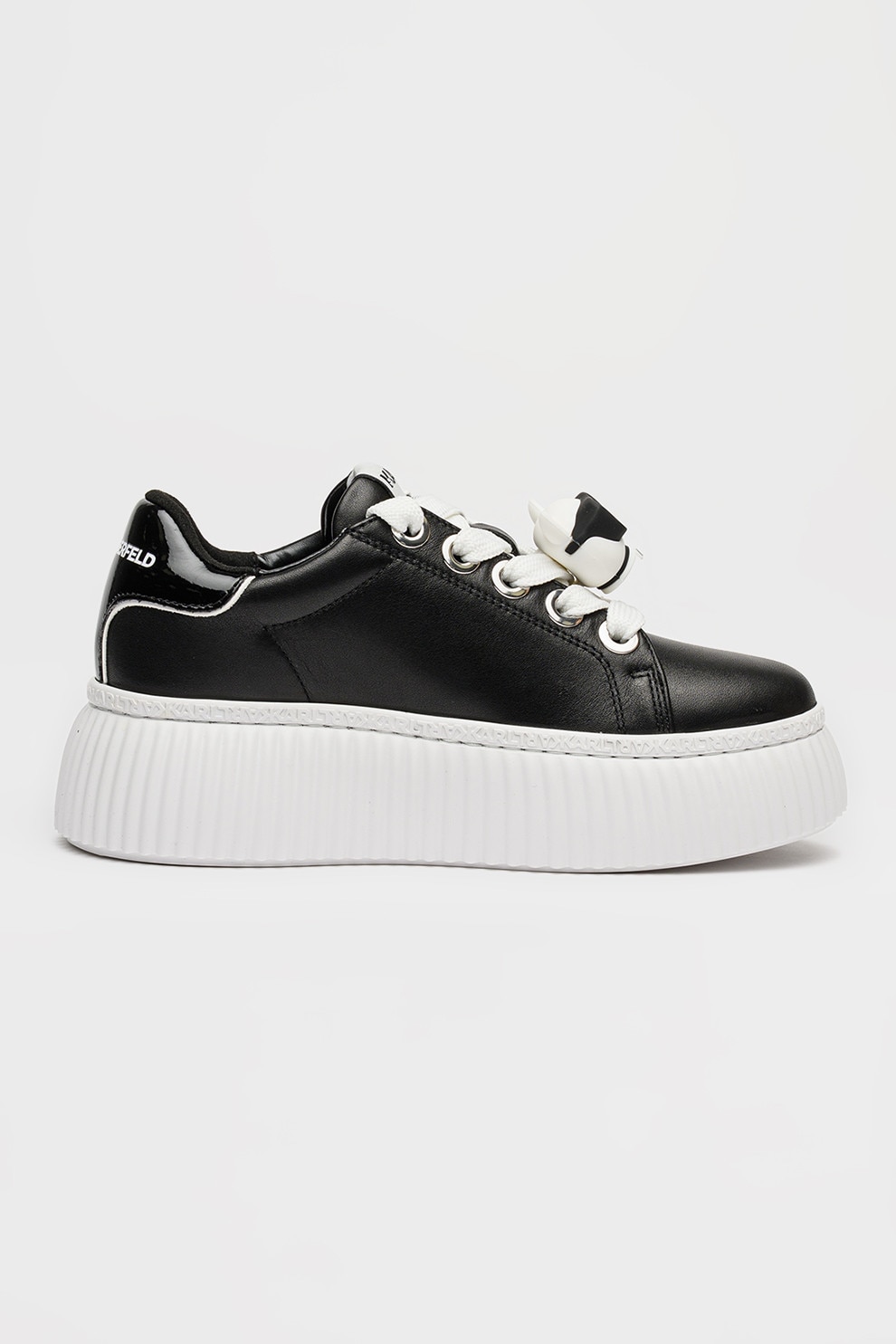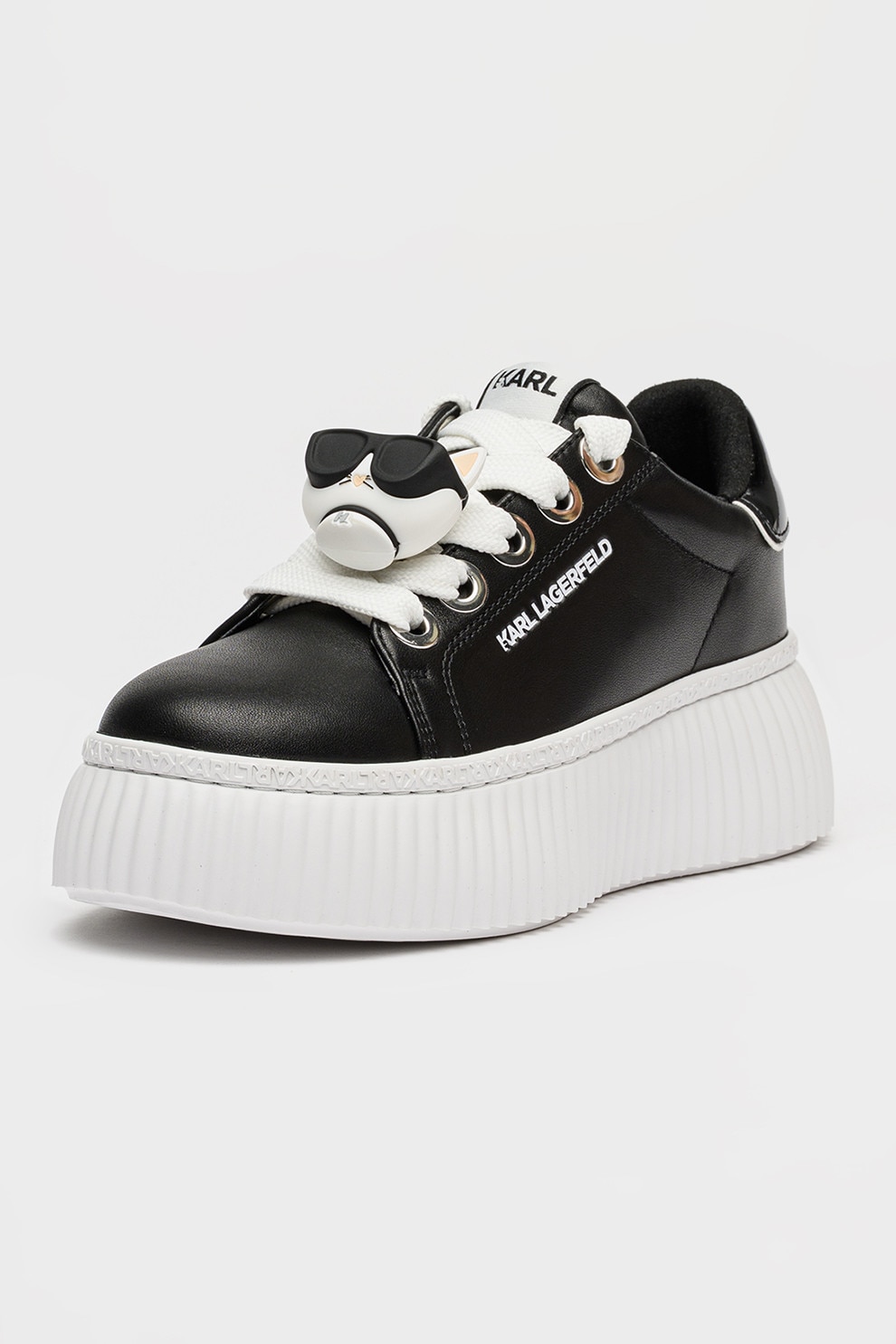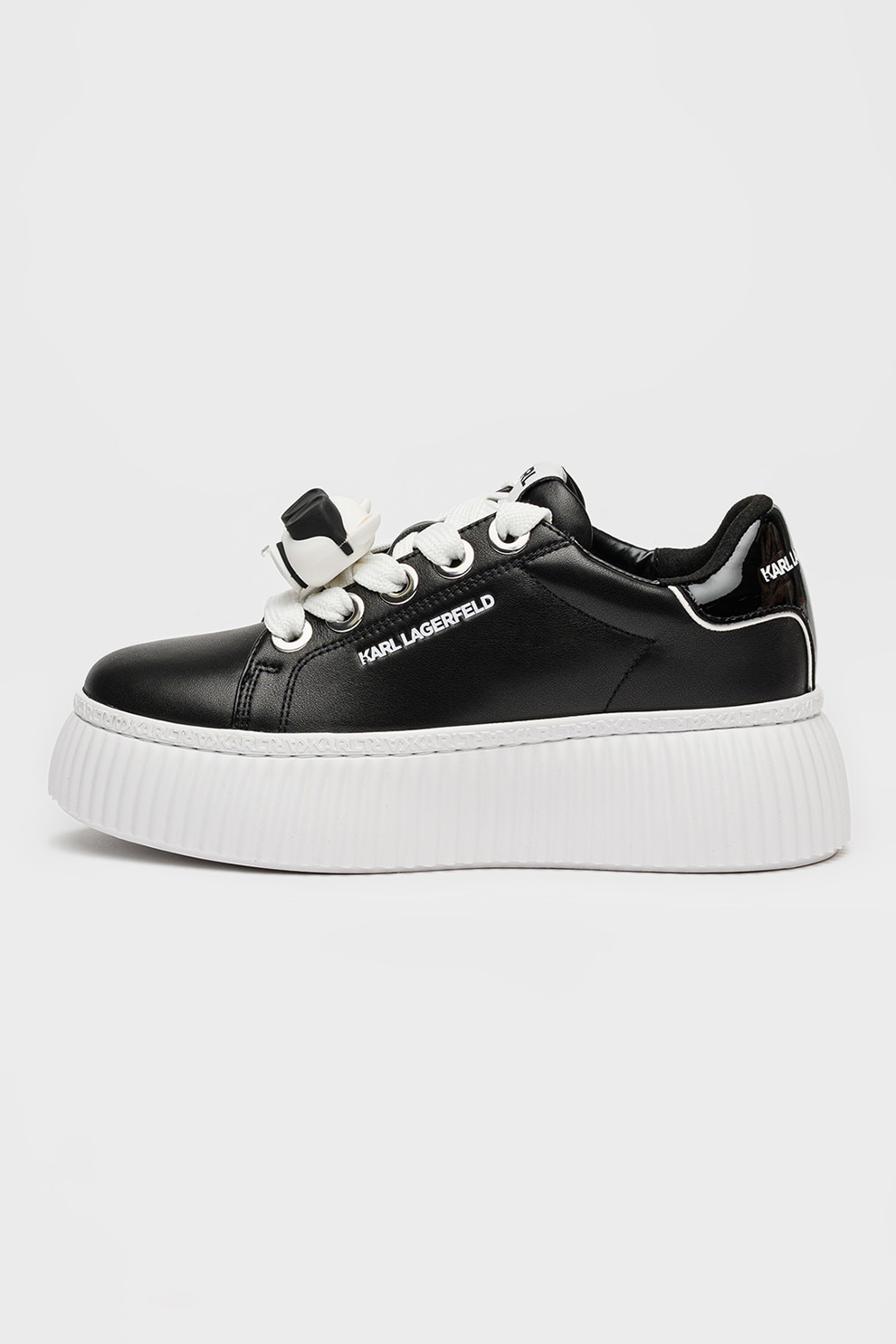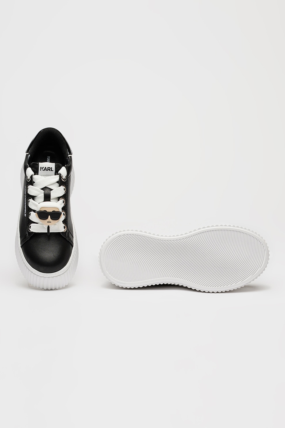 Karl Lagerfeld, Кожени спортни обувки с равна платформа и апликация, Черен