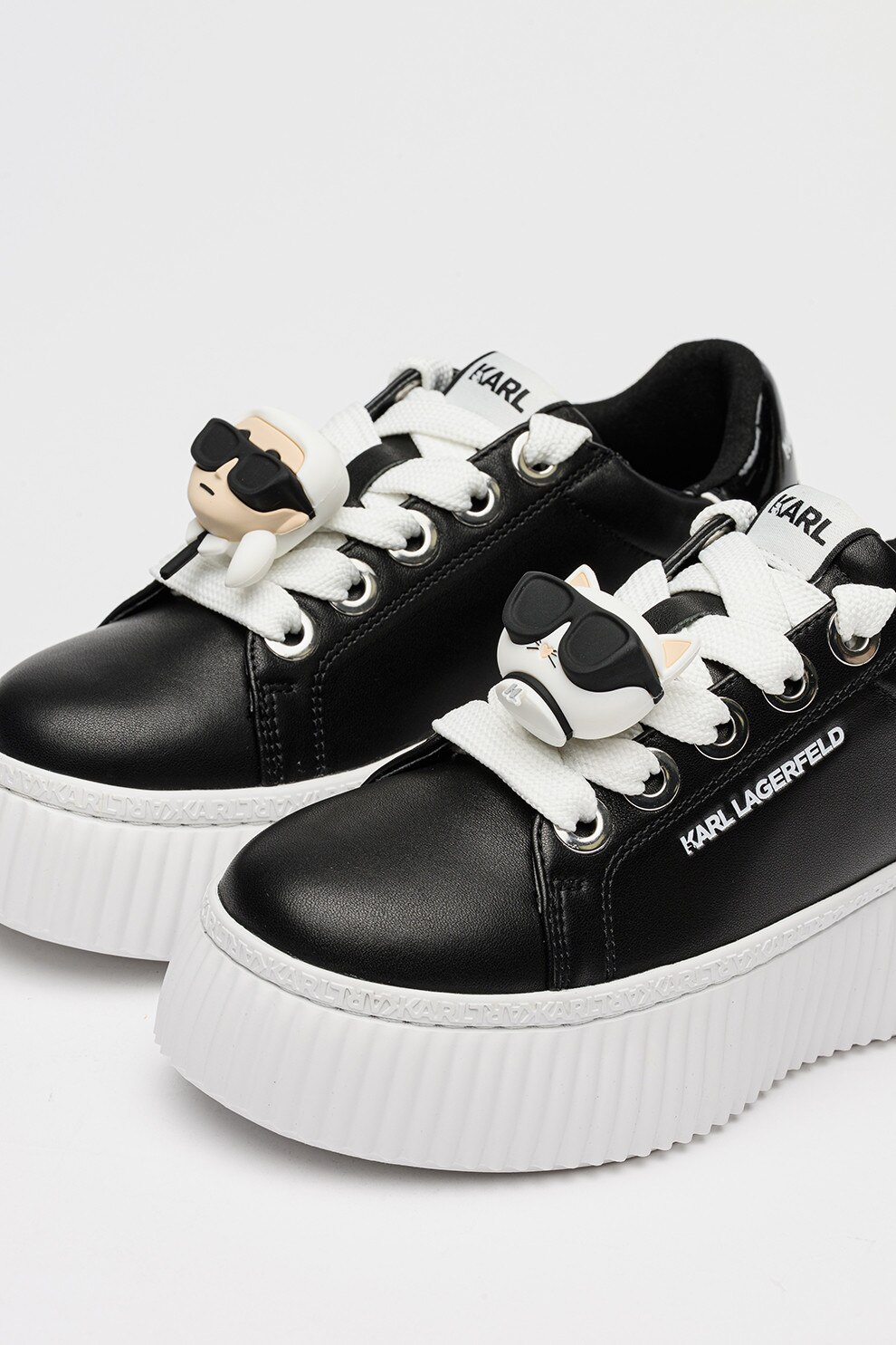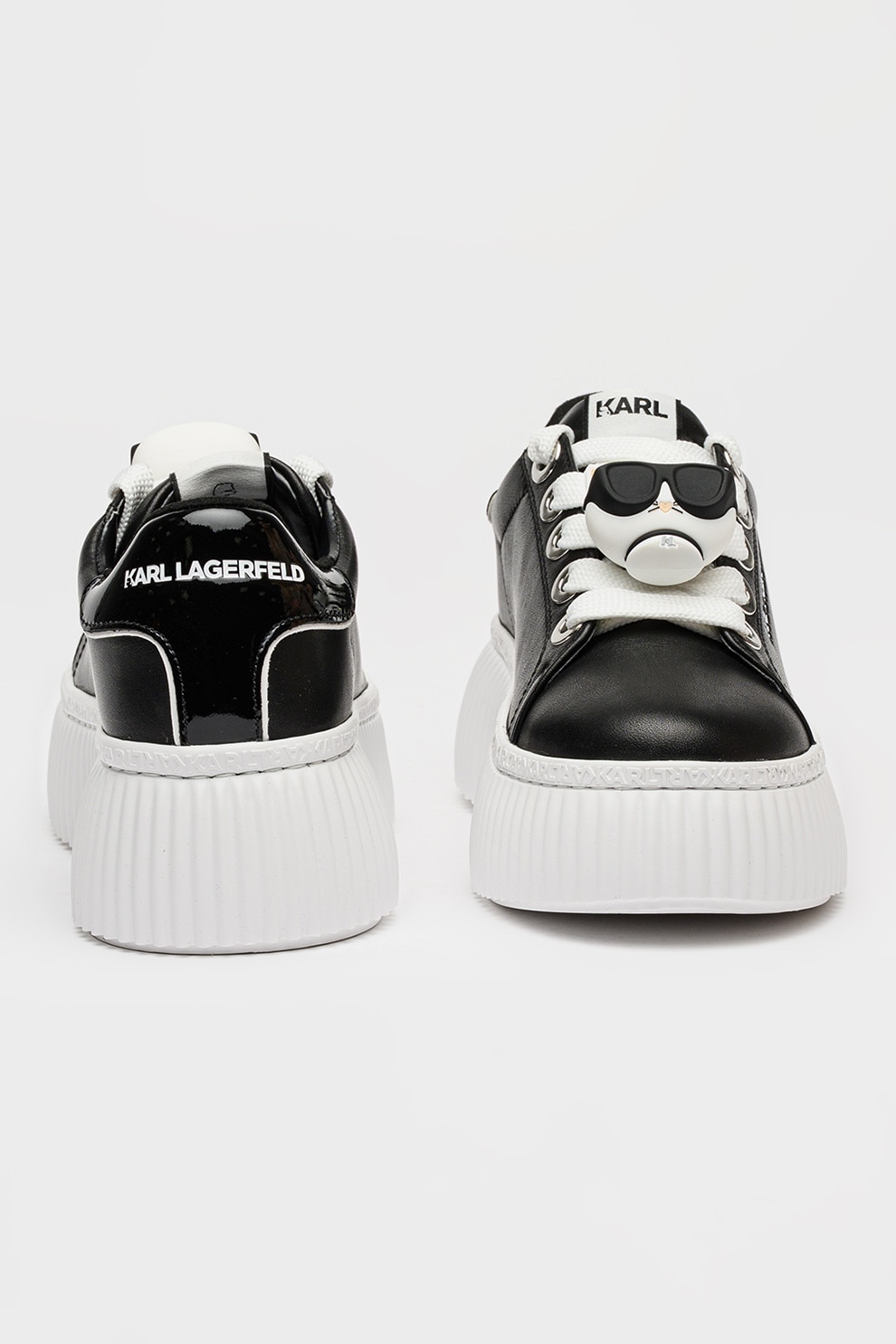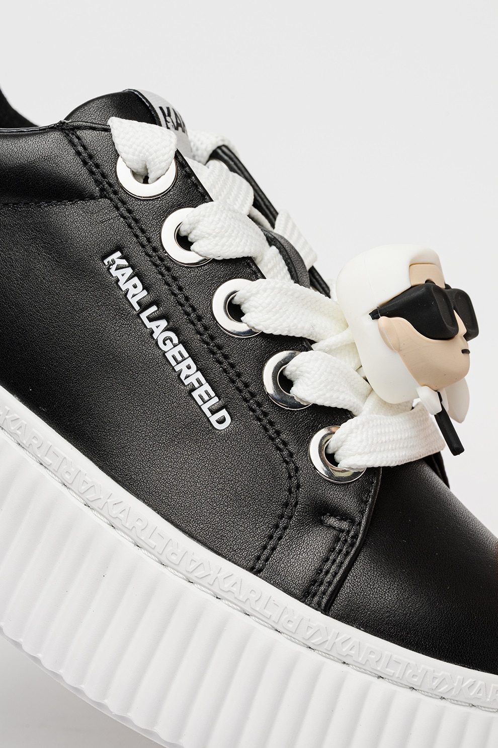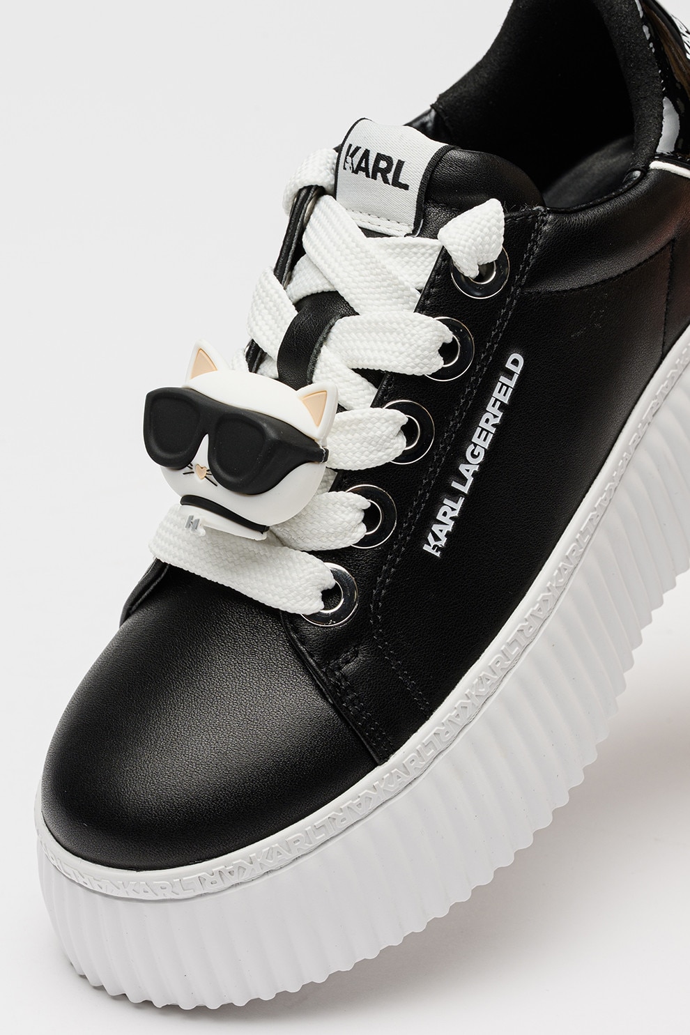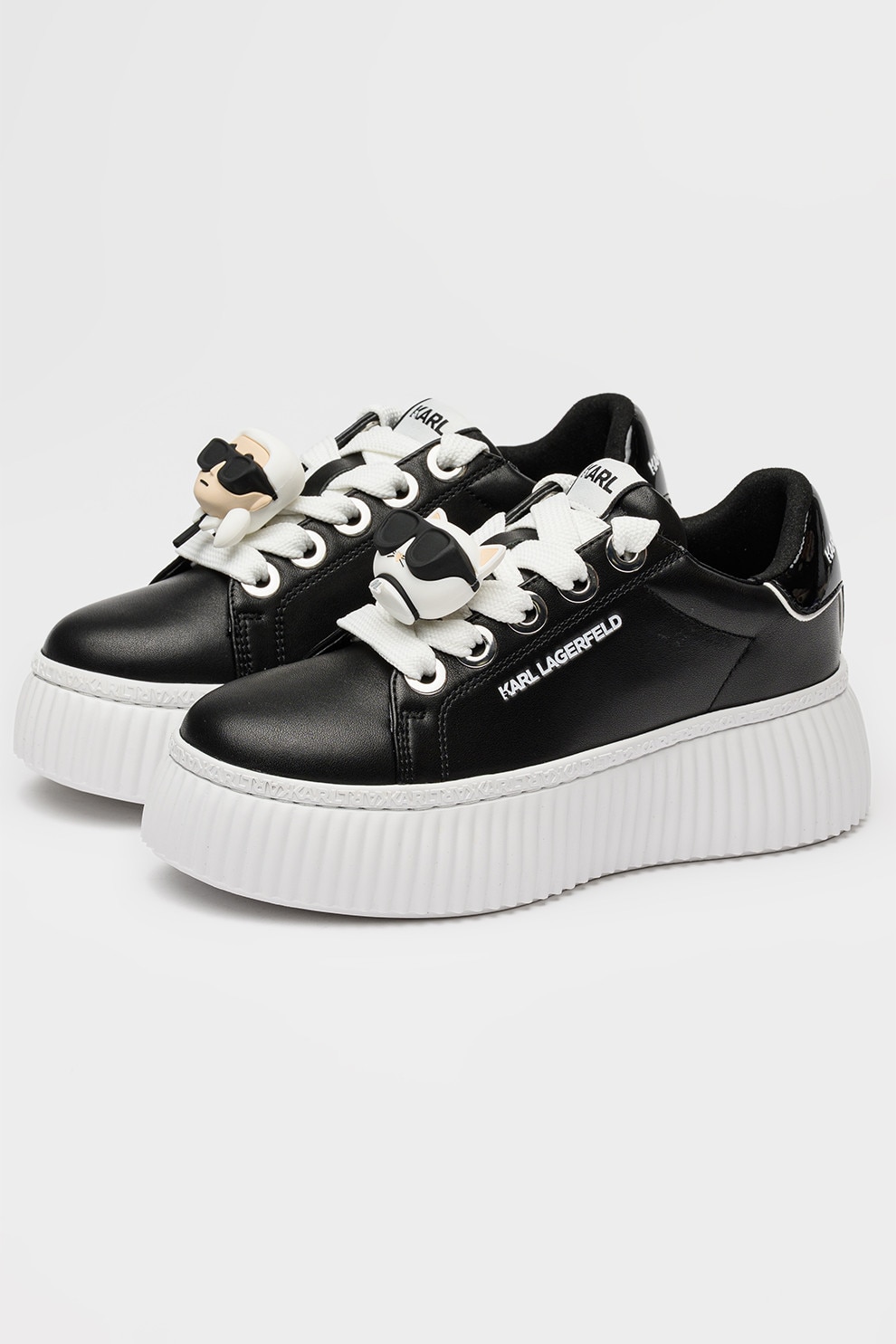 Karl Lagerfeld, Кожени спортни обувки с равна платформа и апликация, Черен
