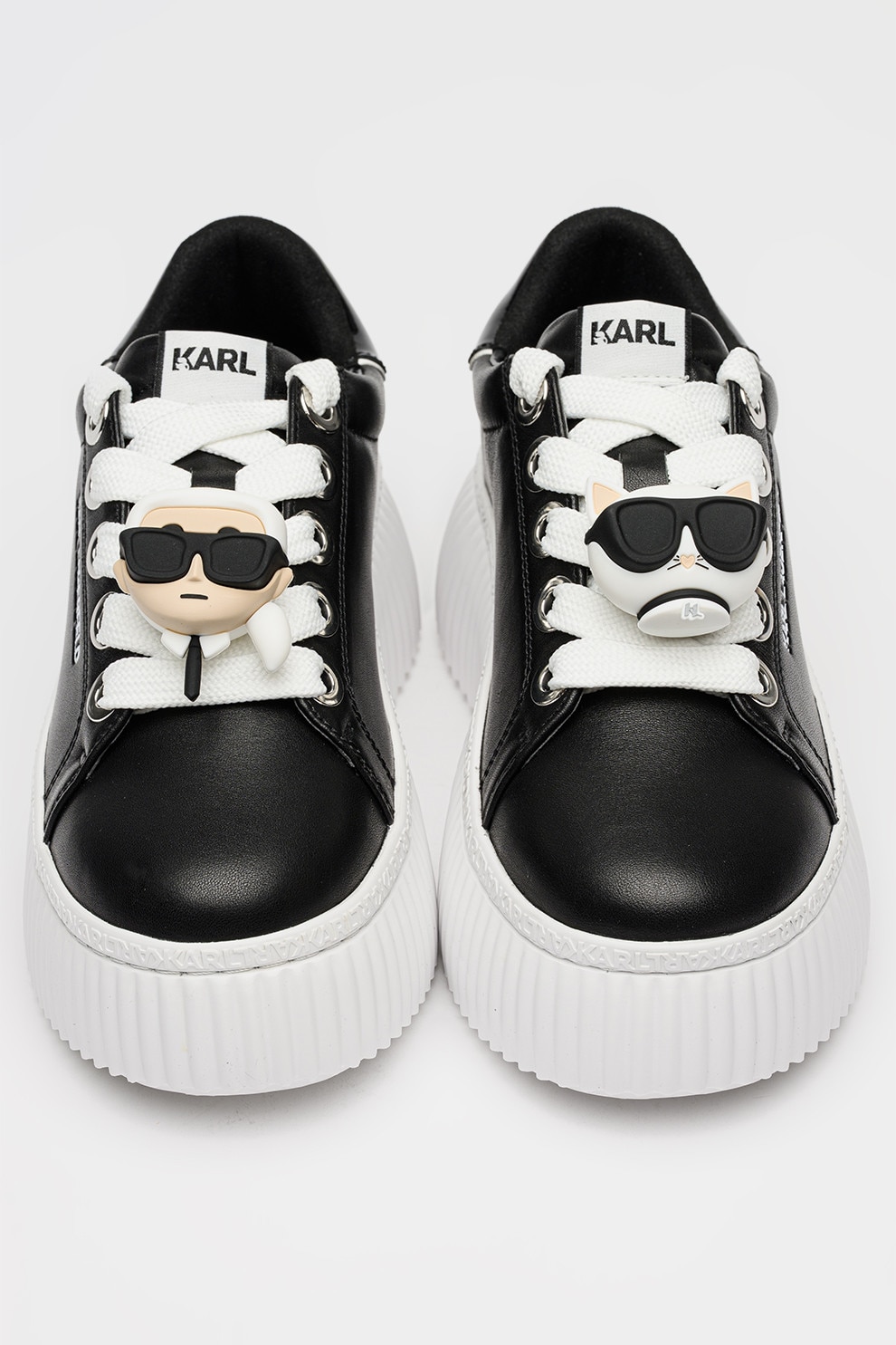 Karl Lagerfeld - Кожени спортни обувки с равна платформа и апликация, Черен