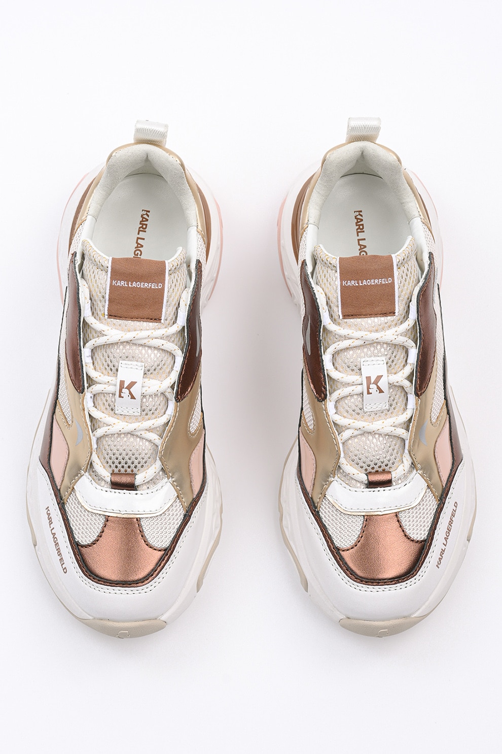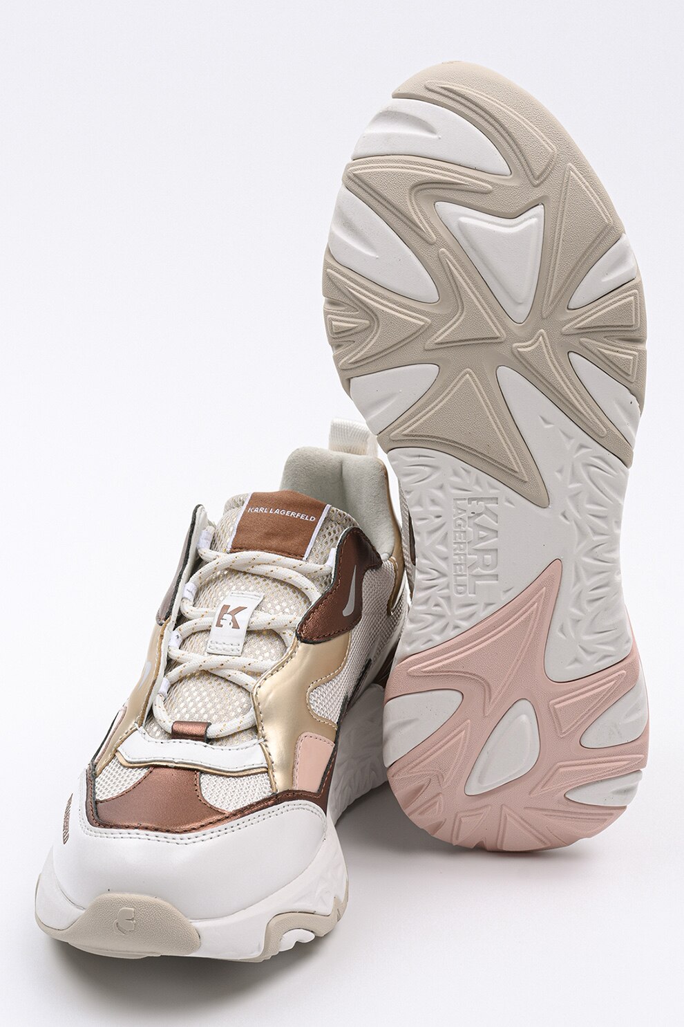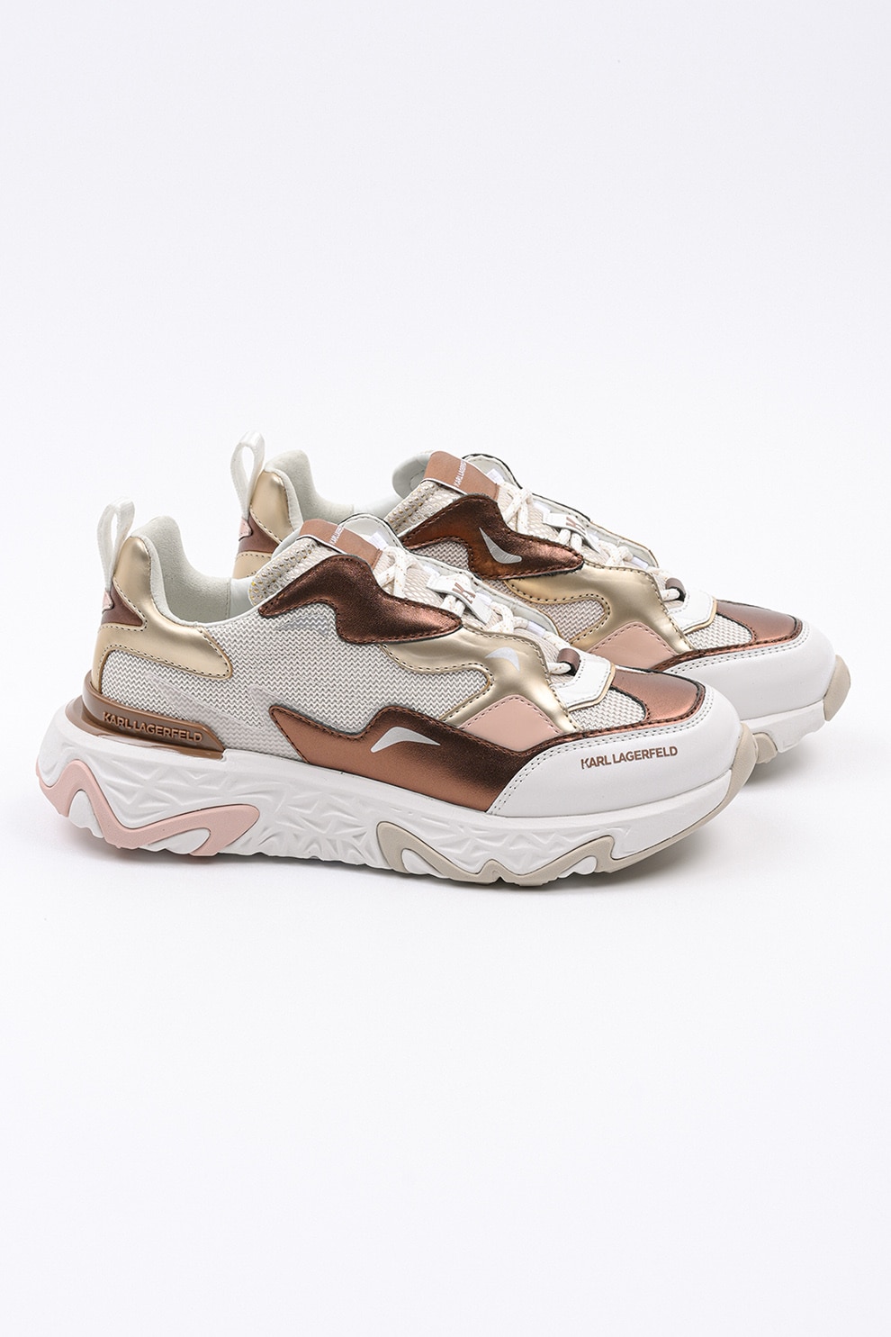 Karl Lagerfeld - Масивни спортни обувки с кожа, Златист/Мръснобял/Бронз
