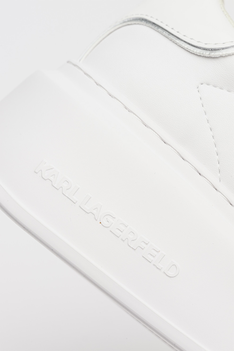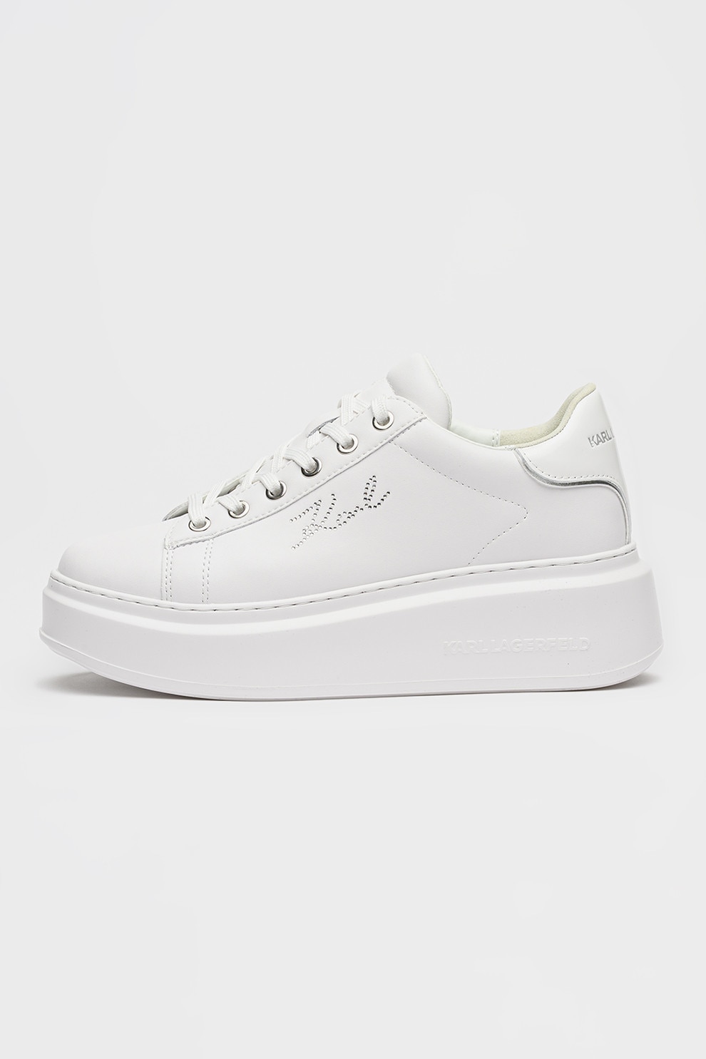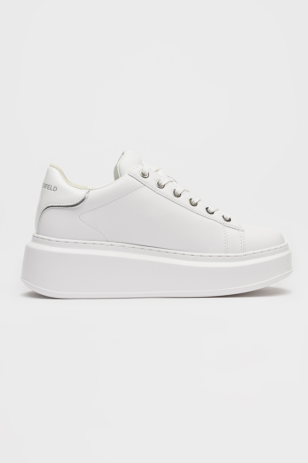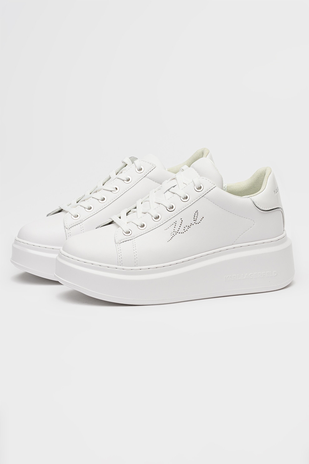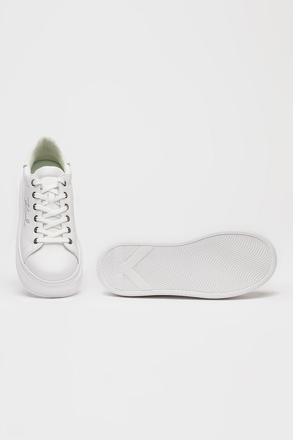Karl Lagerfeld - Скосени кожени спортни обувки с лого, Бял/Сребрист