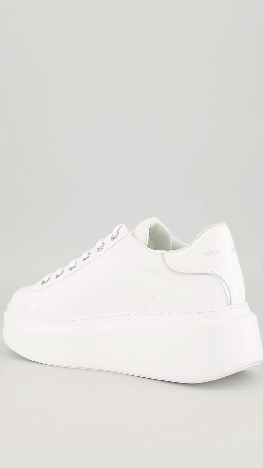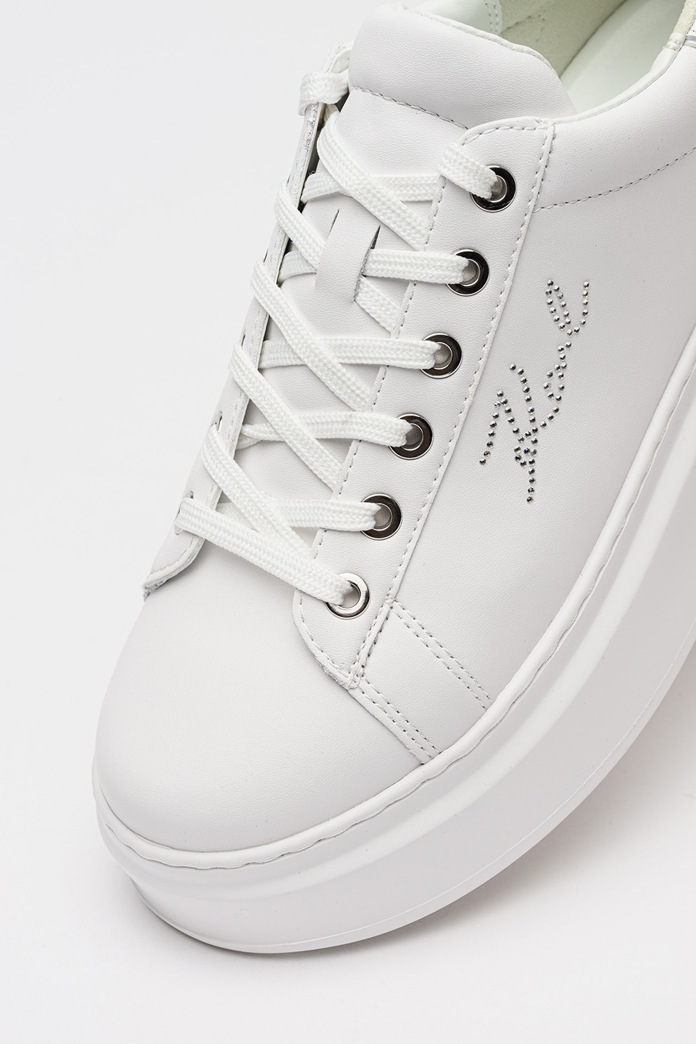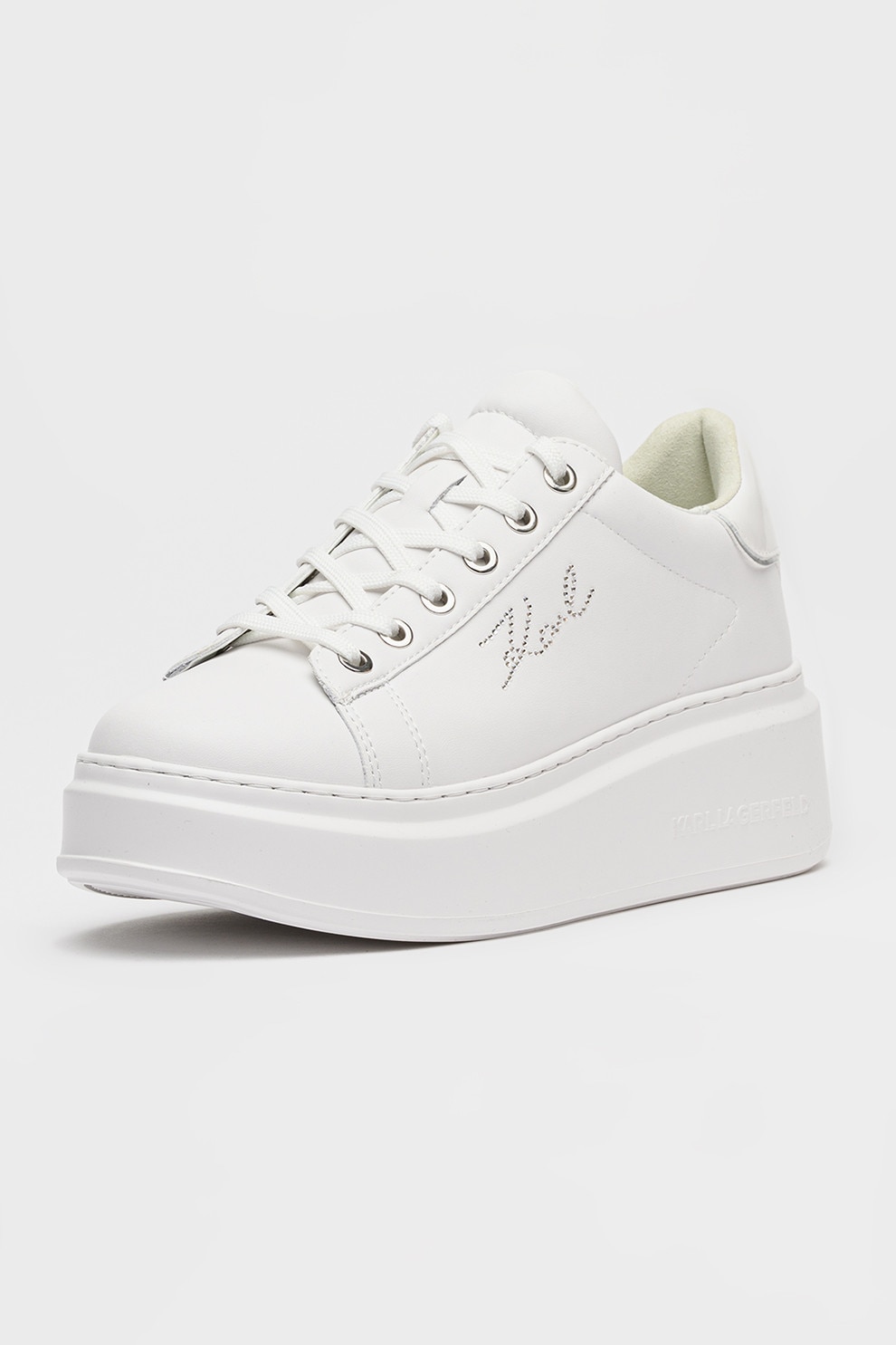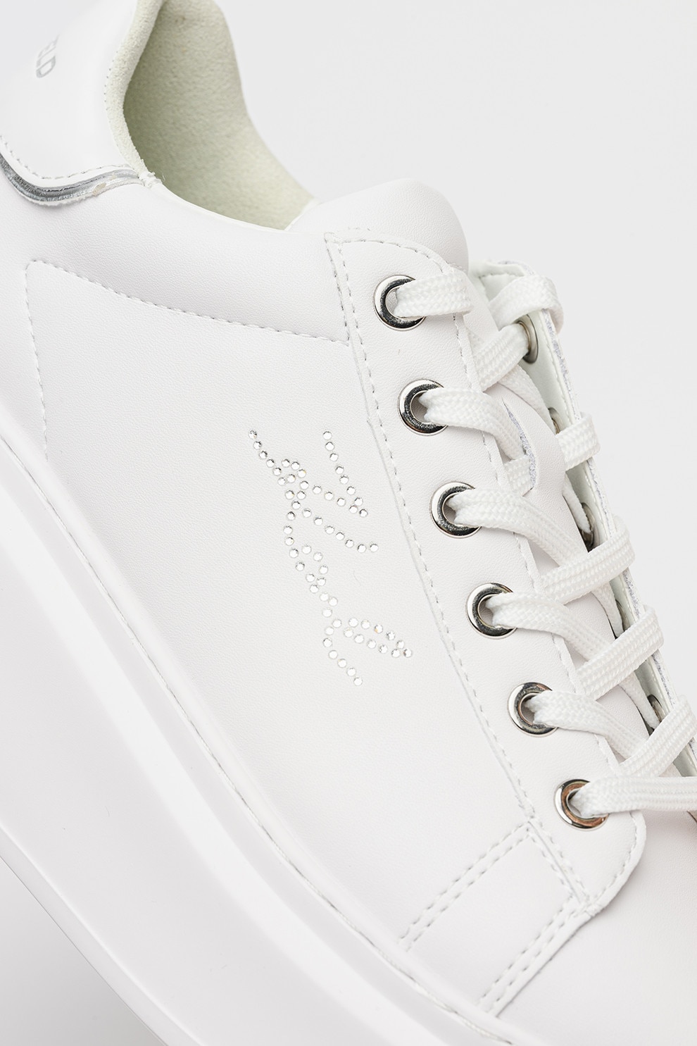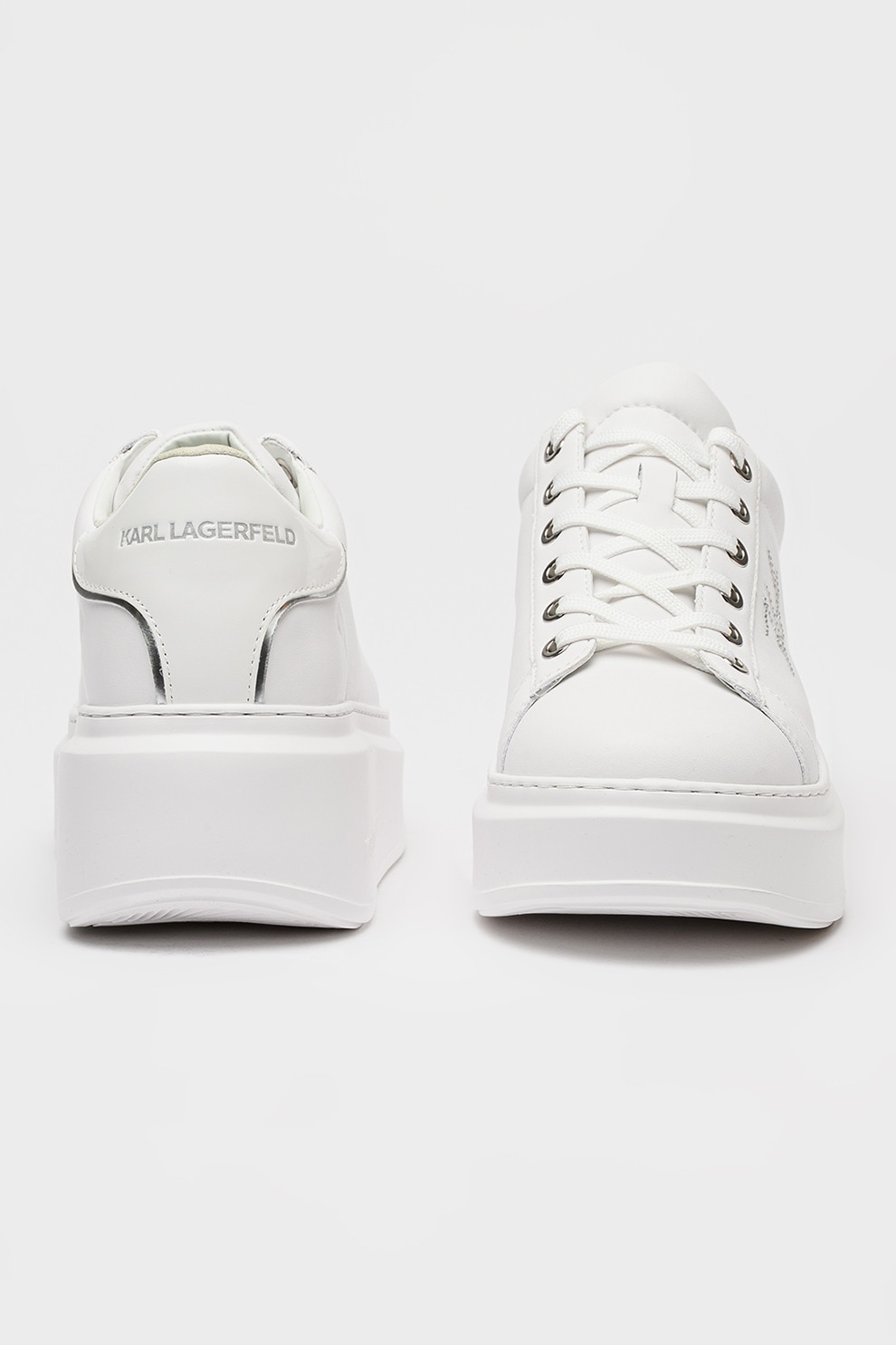 Karl Lagerfeld - Скосени кожени спортни обувки с лого, Бял/Сребрист