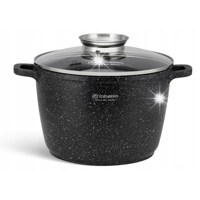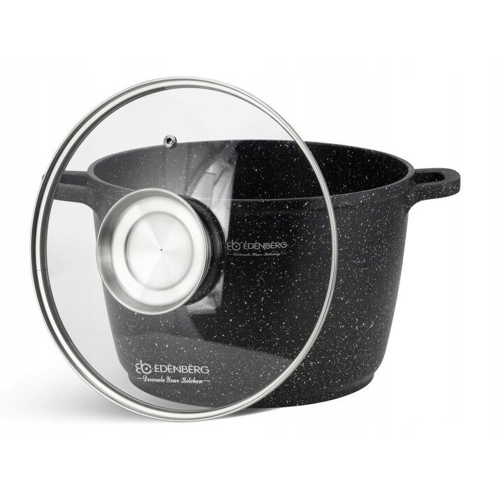 Керамично-гранитна тенджера Edenberg EB-8131, 6.2L, 24см, със стъклен капак и 2х силиконови дръжки