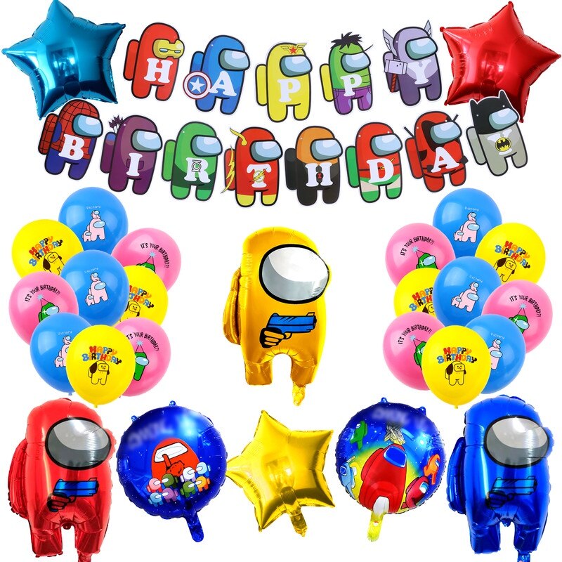 Комплект балони за рожден ден сред нас, банер Честит рожден ден, сред нас балони от алуминиево фолио, сред нас парти декорации, сред нас латексови балони
