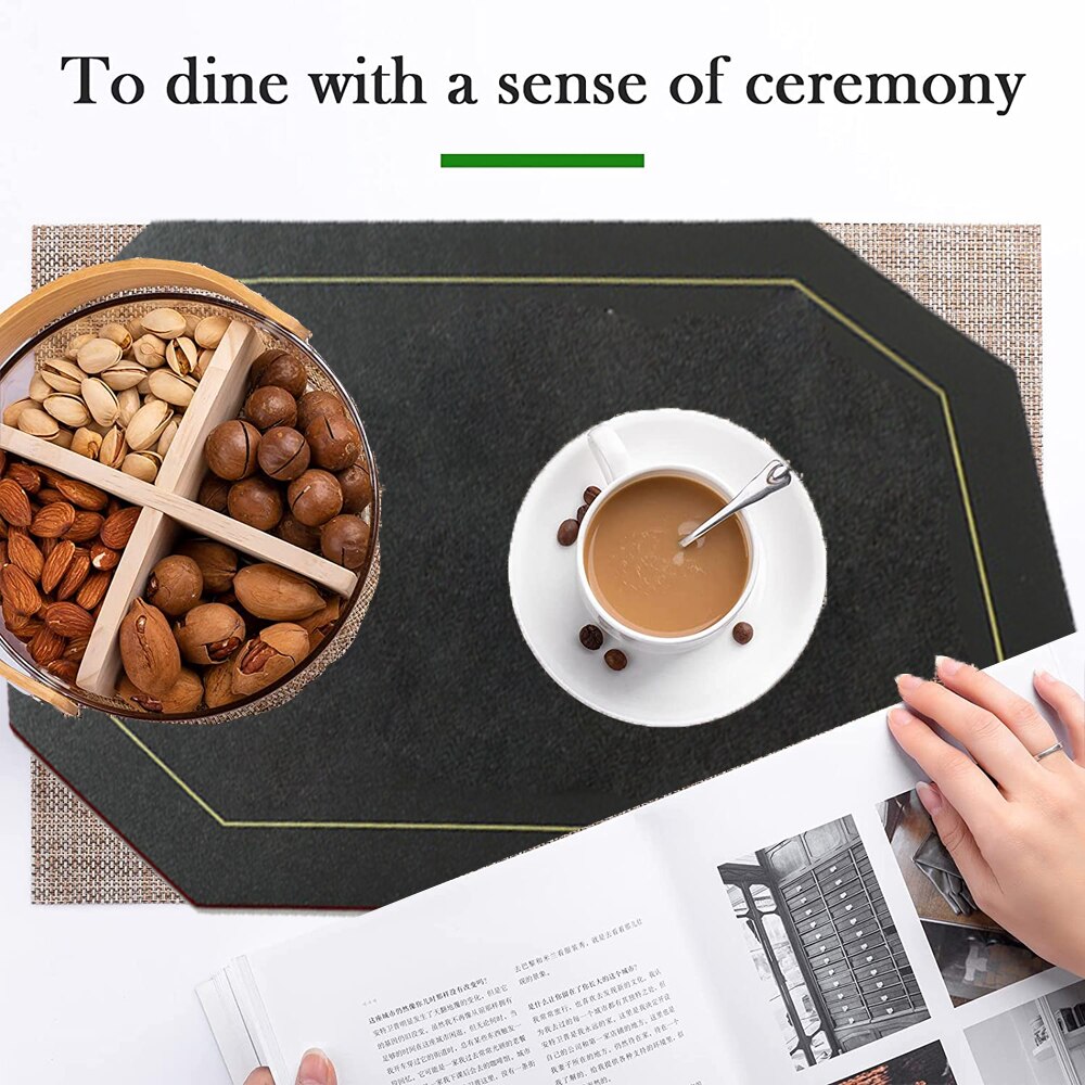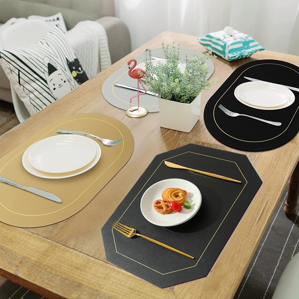 Комплект от 3 поставки за чинии, longziming, екокожа, може да се пере, 30x43 см, черен