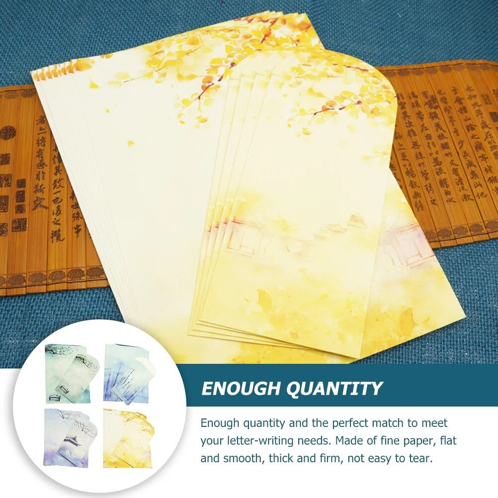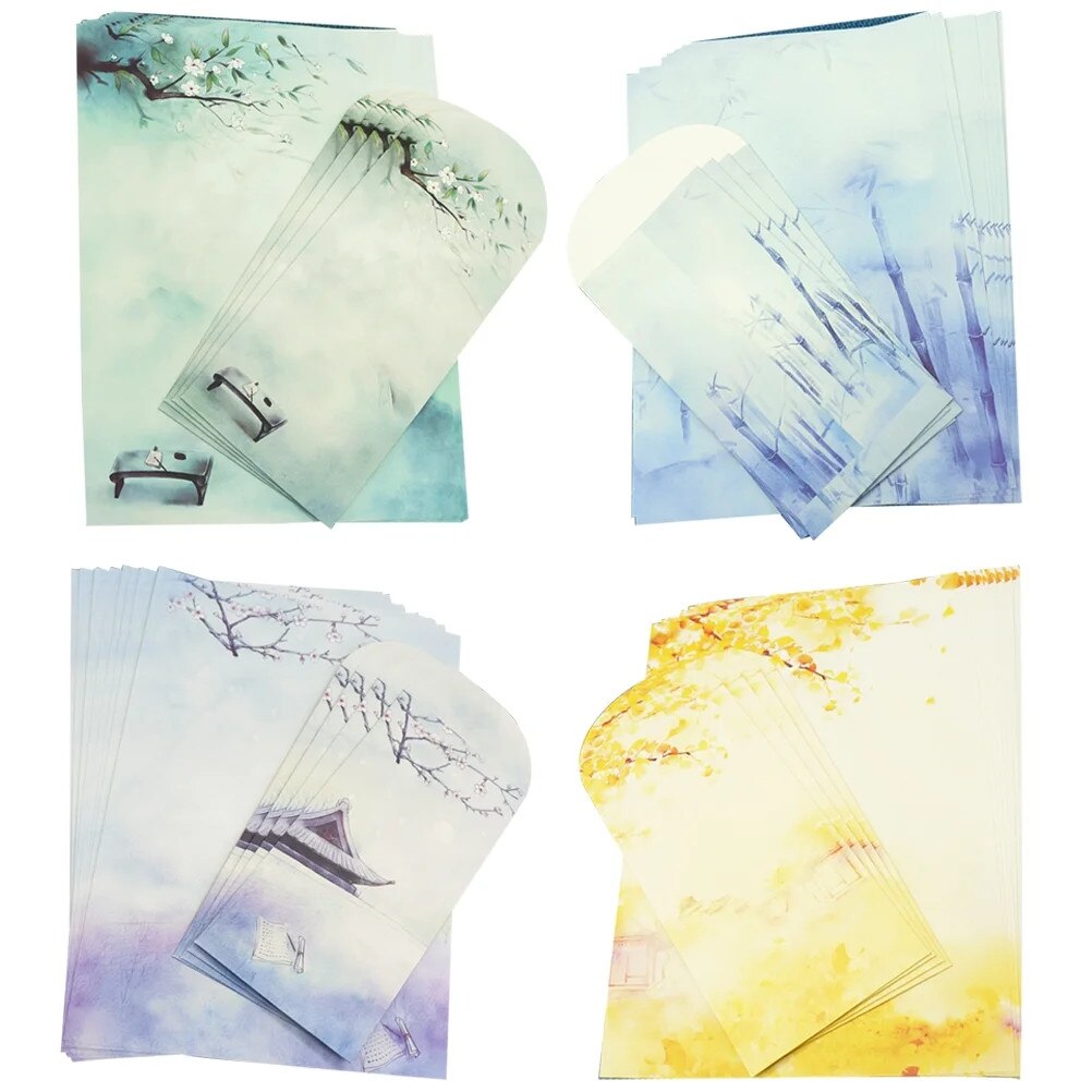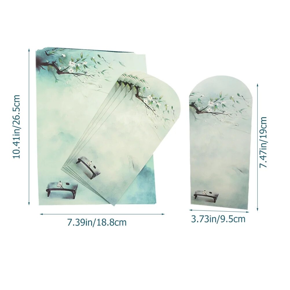 Комплект плик и хартия за писане, китайски стил, ретро, размери 26.50x18.80см и 19.00x9.50см, различни цветове