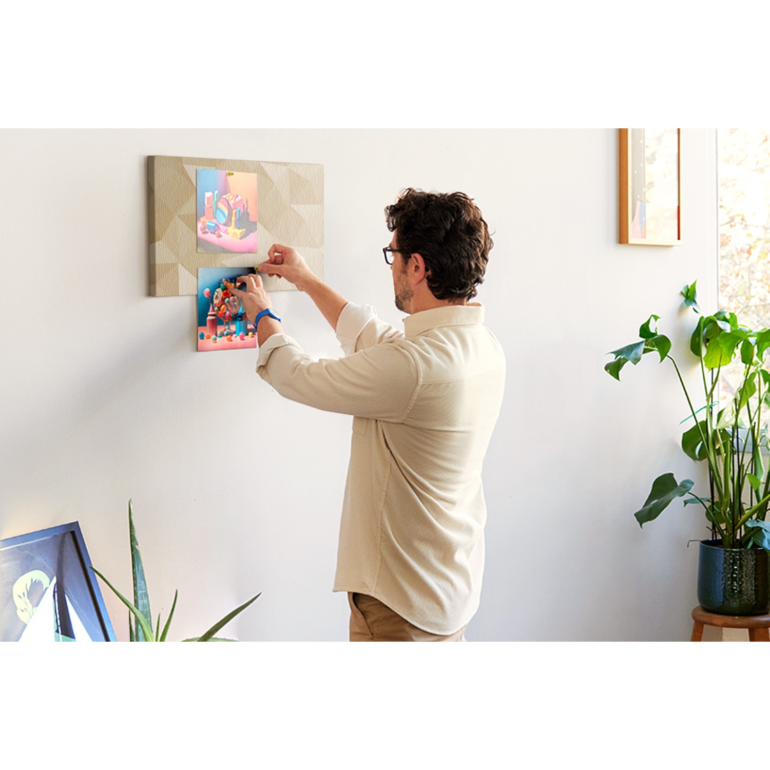 Корково табло с художествен принт – интериорна декорация и практична дъска за закачане на кабарчета и бележки