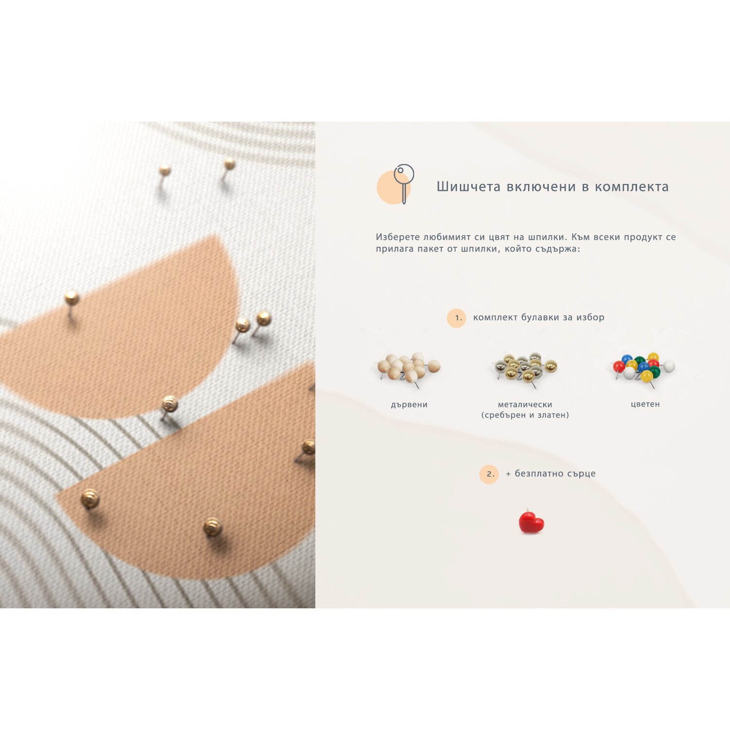 Комплект кабарчета – здрави и естетични, идеални за закачане на бележки, снимки, картички и вдъхновения.