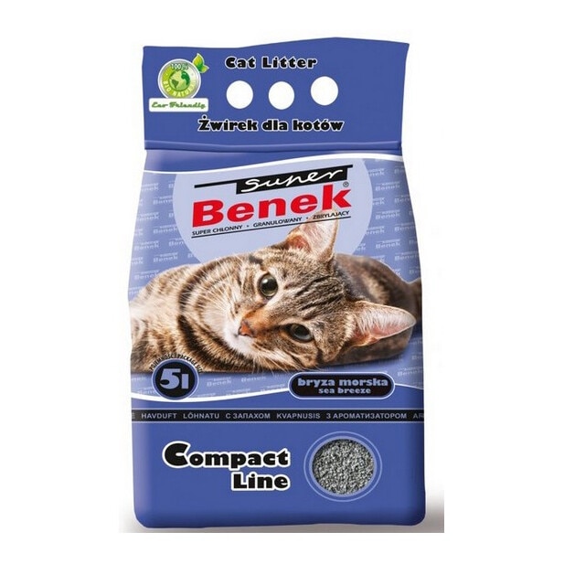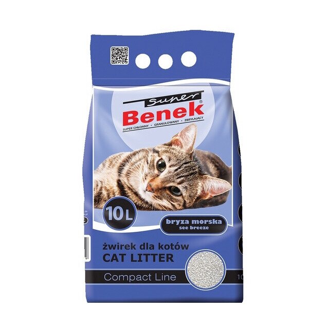 Котешка тоалетна, Super Benek Compact 10L, порести гранули, абсорбираща, премахва миризми, синя