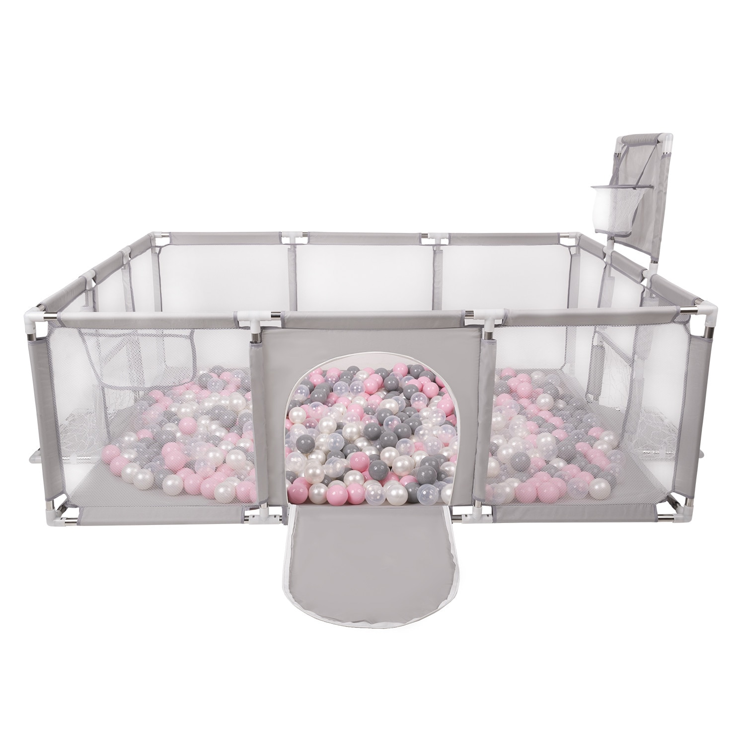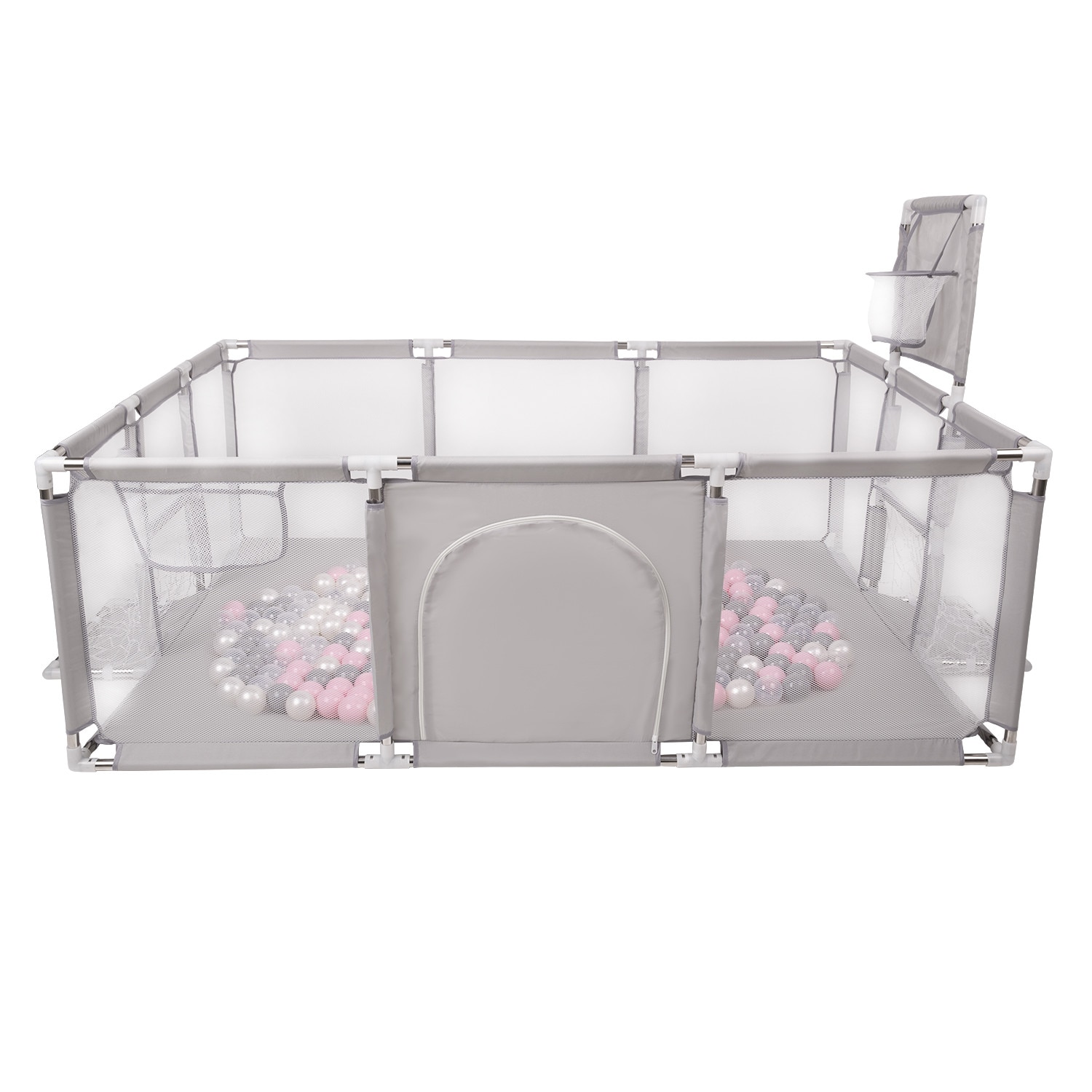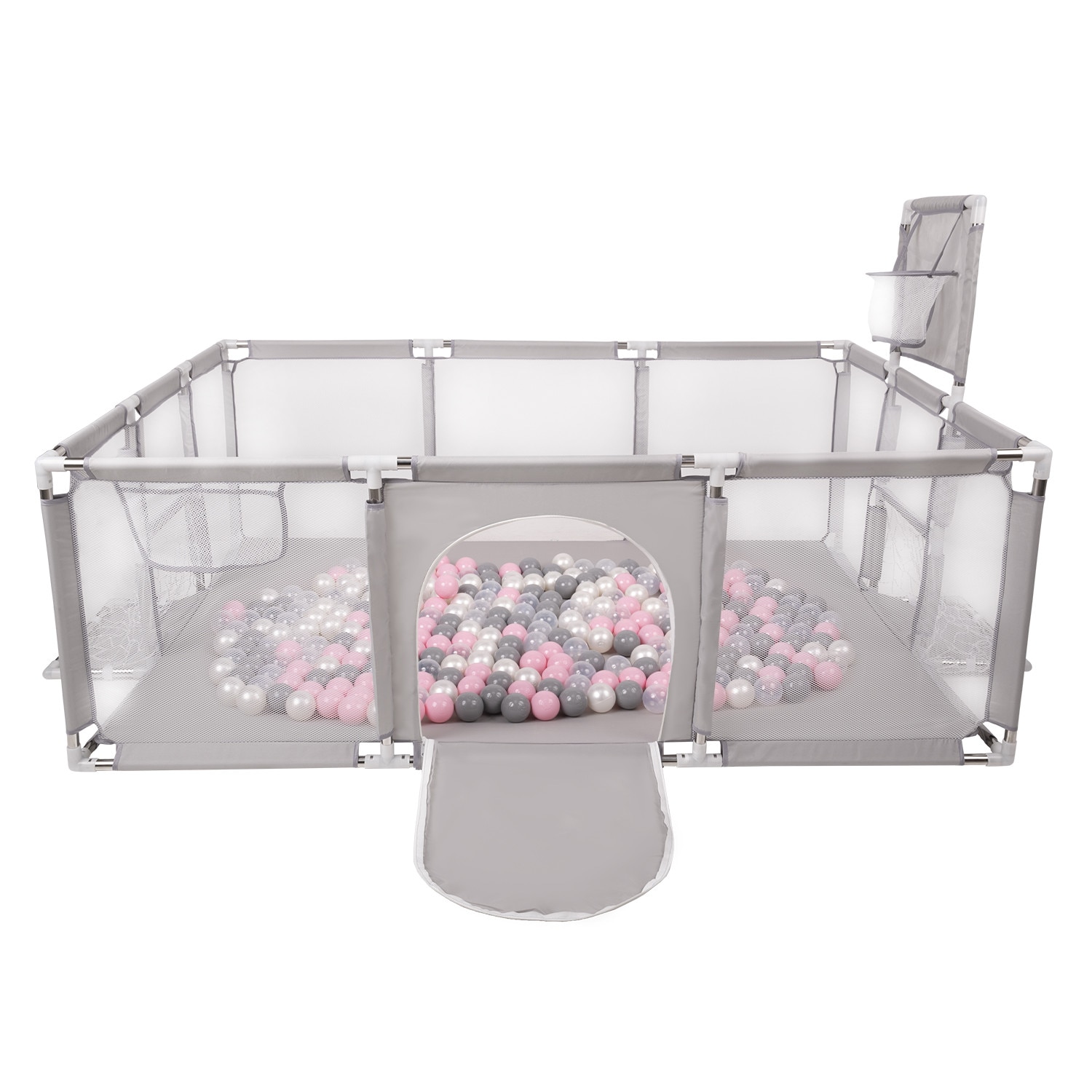 Кът за игра Selonis, Полиестер/Полиетилен, 100 топки, 180x122x62 см, Сив, 1 година+