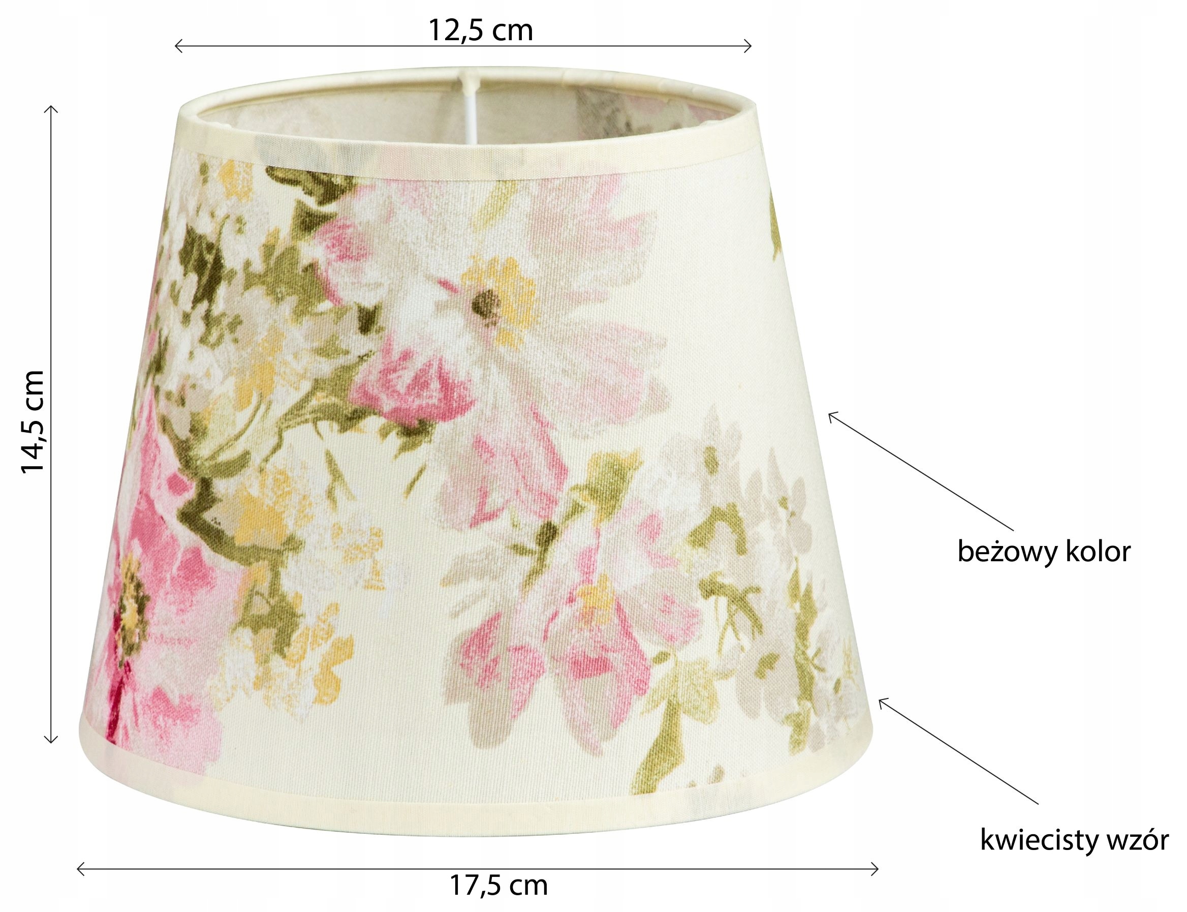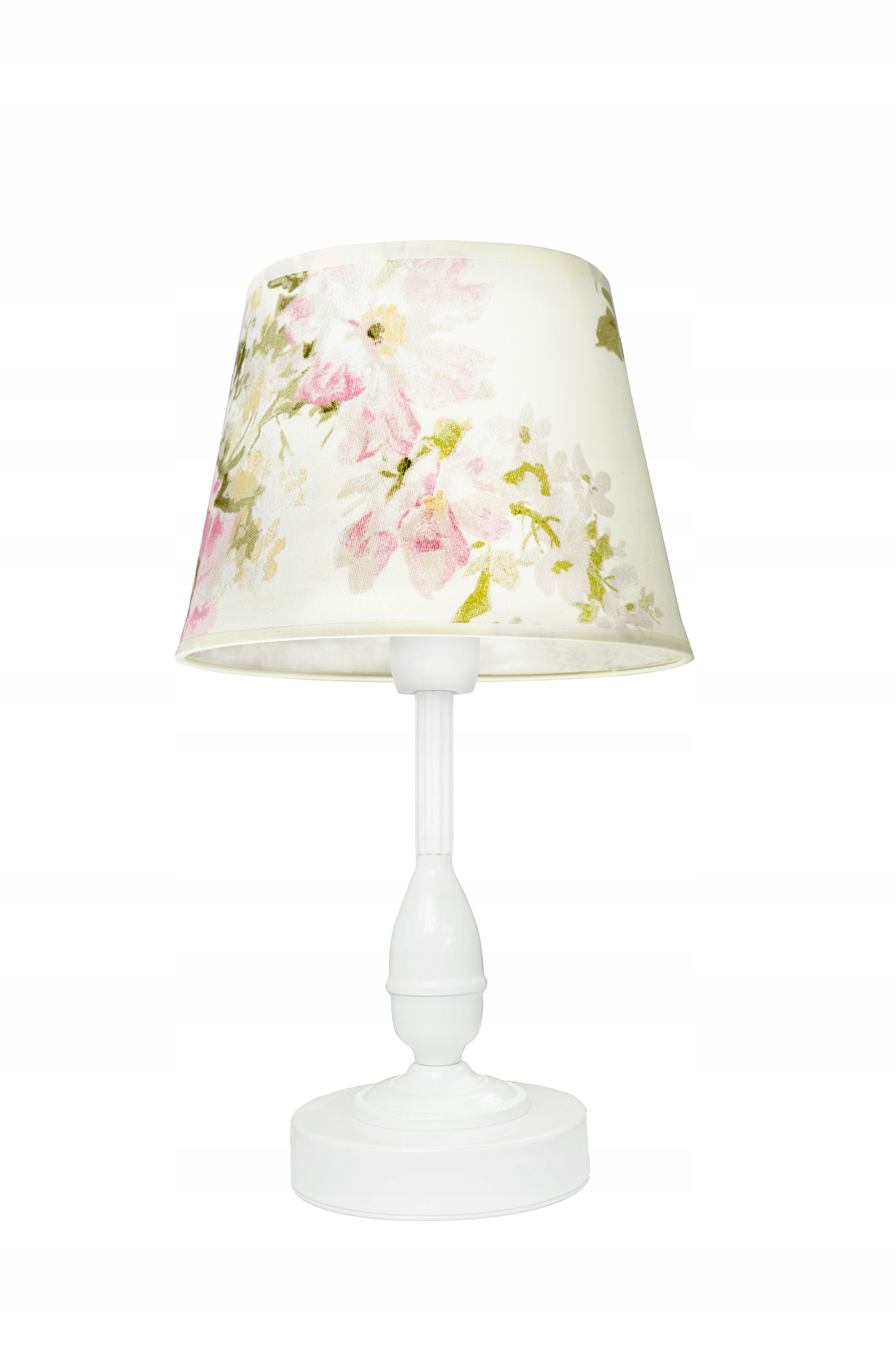Лампа Komat PORTO, абажур в екрю с мотив на цветя, 17.5x35см, бял